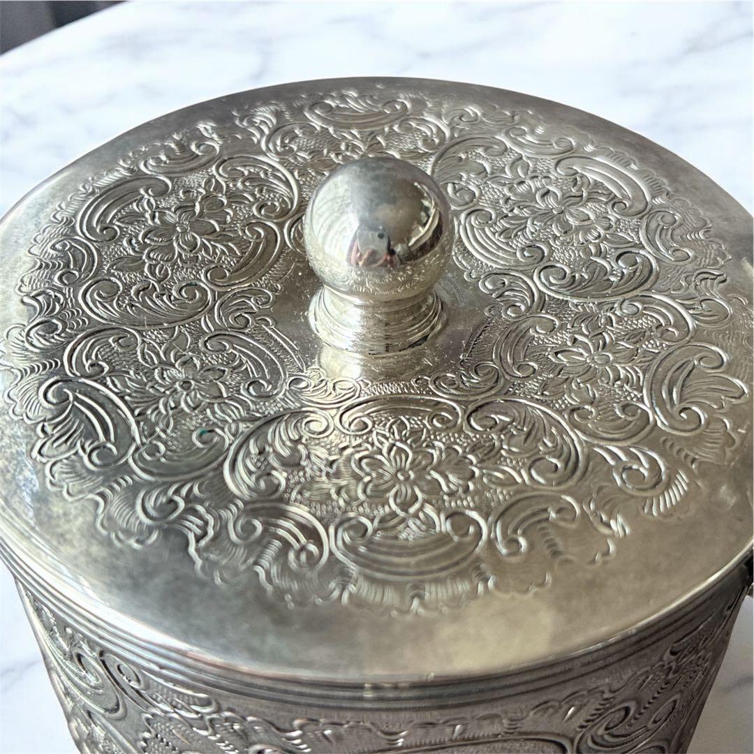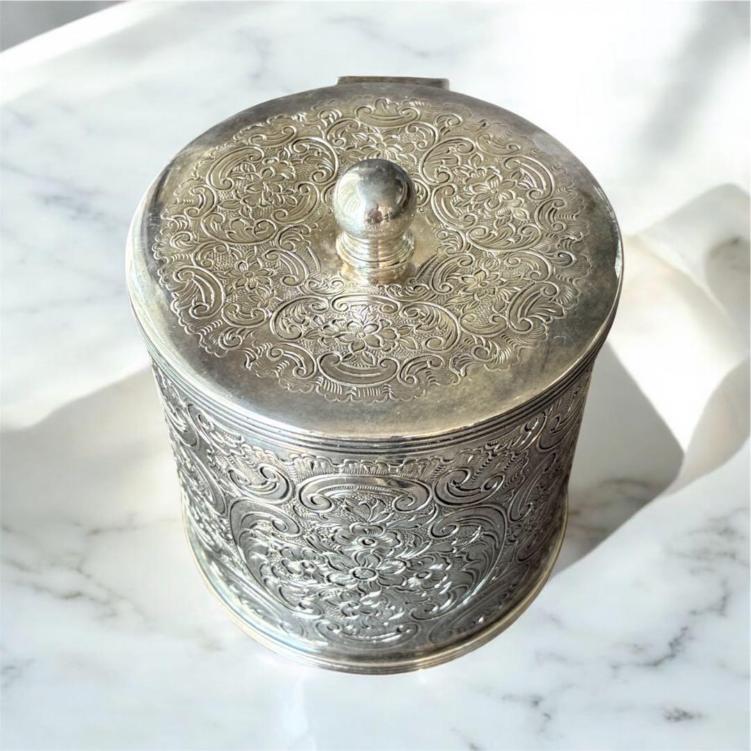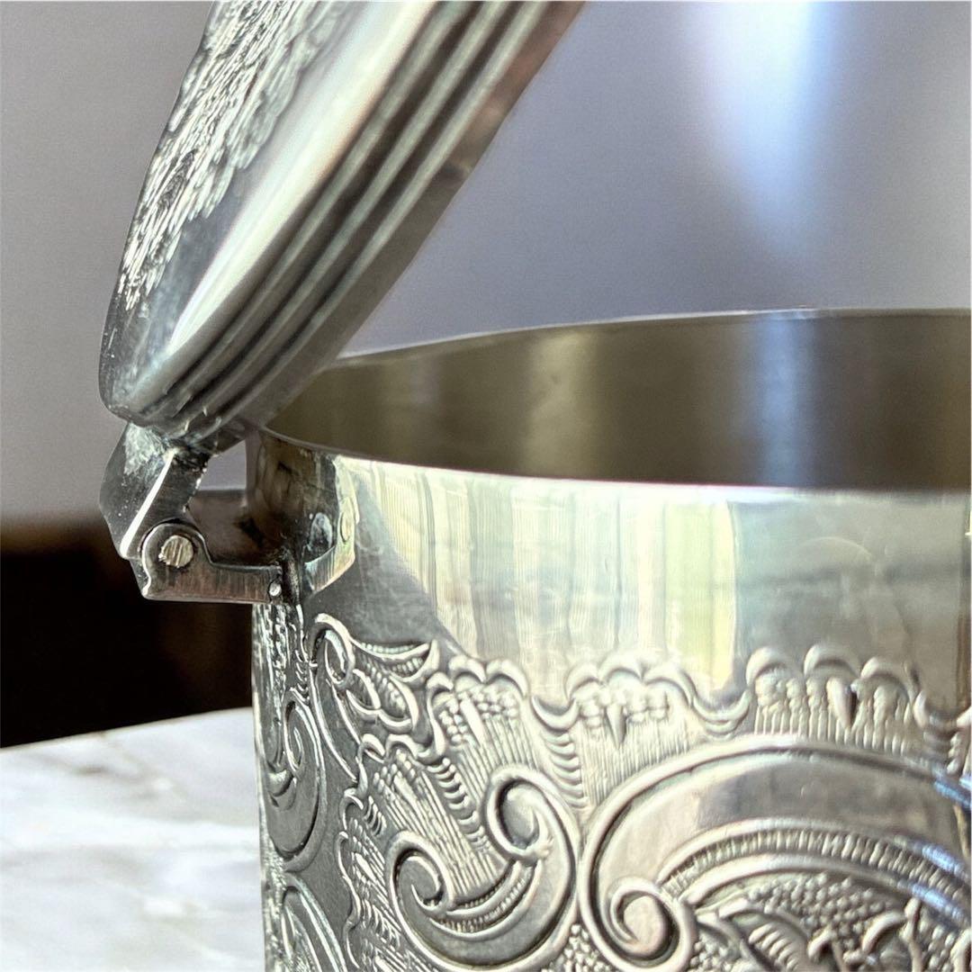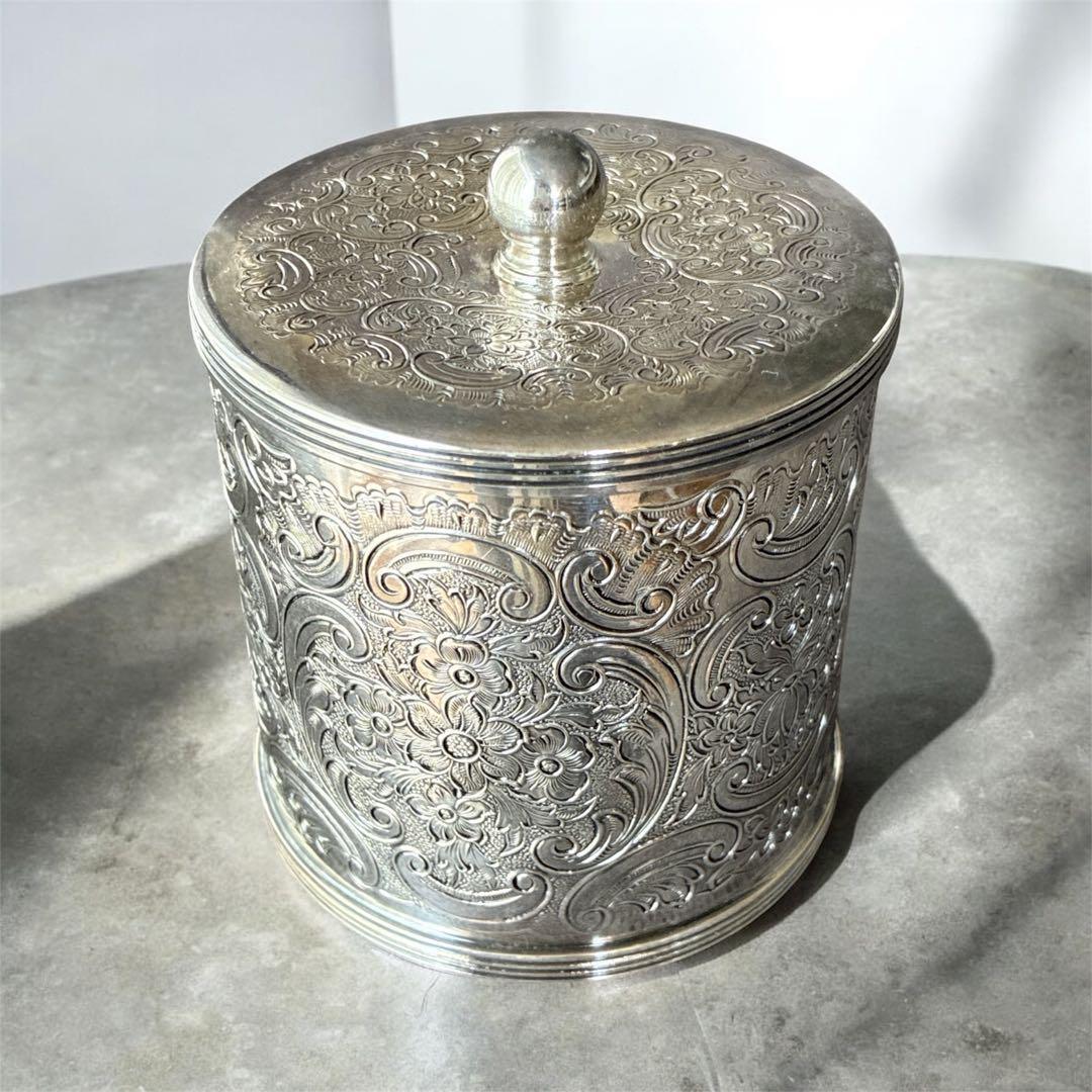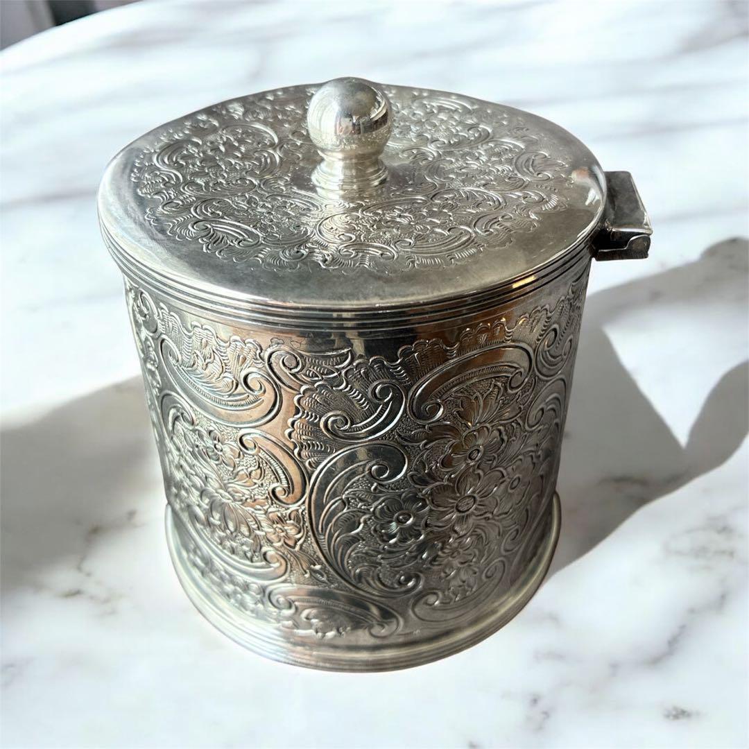 【高級】英国 Barker Ellis アンティーク ティーキャディ シルバープレート 紅茶葉入れ 彫刻装飾 蓋付き 1930〜50年代頃 イギリス製