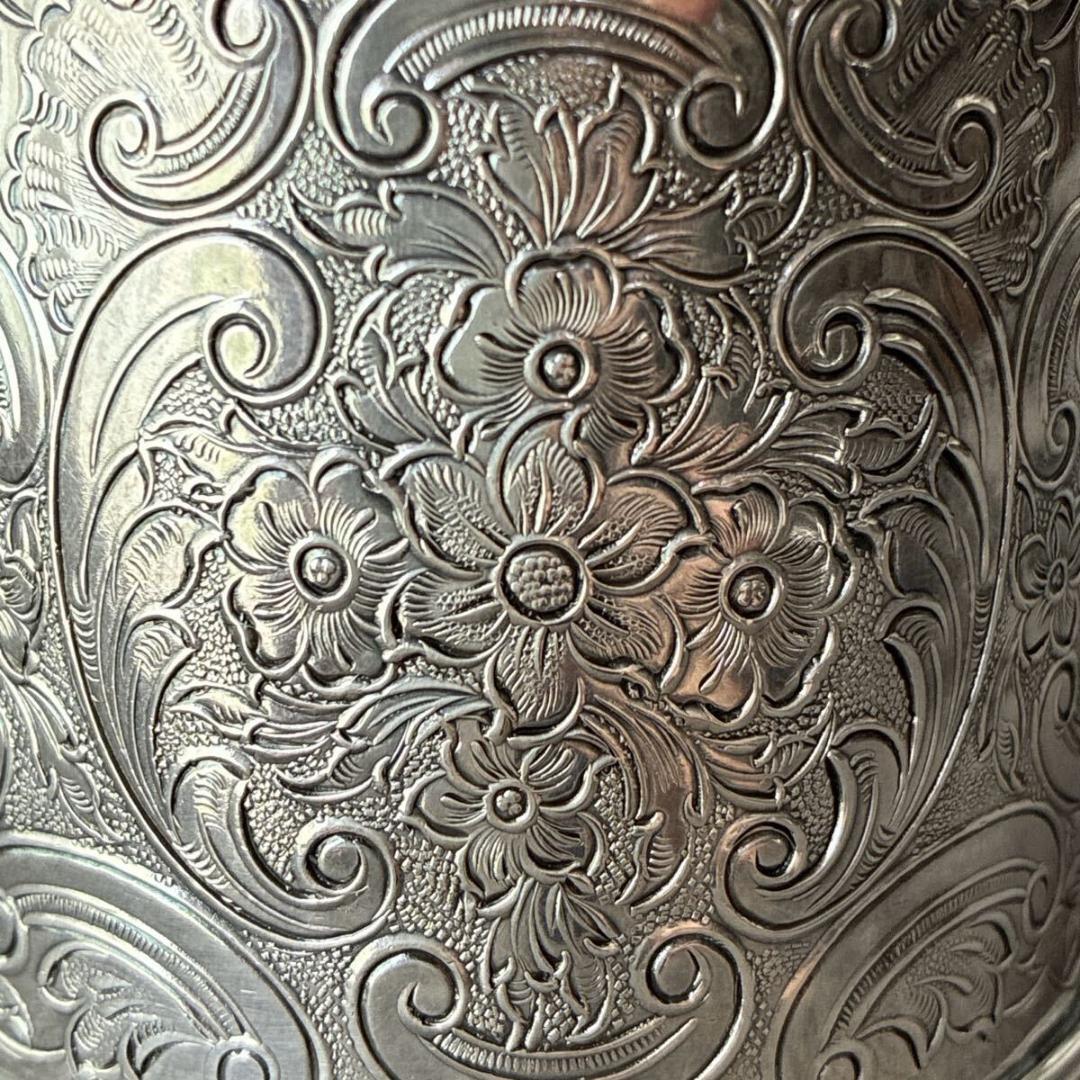 美しい花唐草模様が全面に施されたアンティークのティーキャディです。