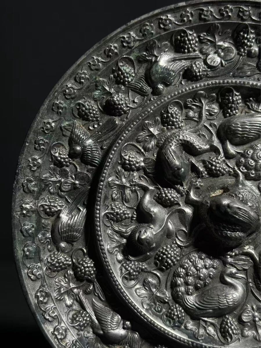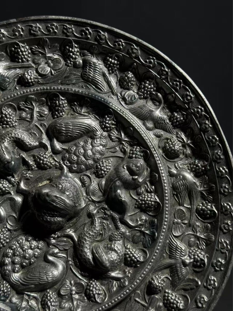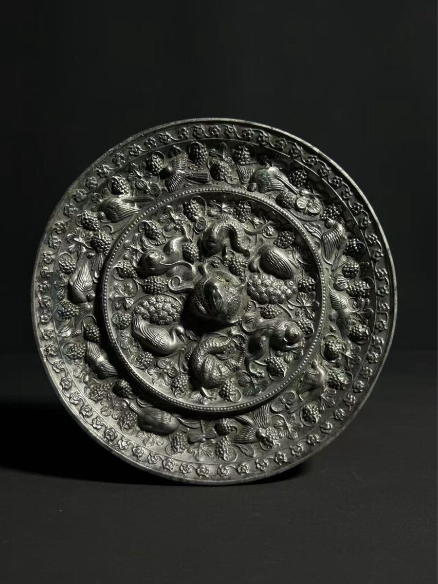 【竹華】中国古美術 古鏡 海獣葡萄鏡 銅鏡 唐時代 青銅鏡 円鏡 漢鏡 中国古玩 古玩 骨董 時代物 当時物 唐物 古銅 青銅器 sw9
