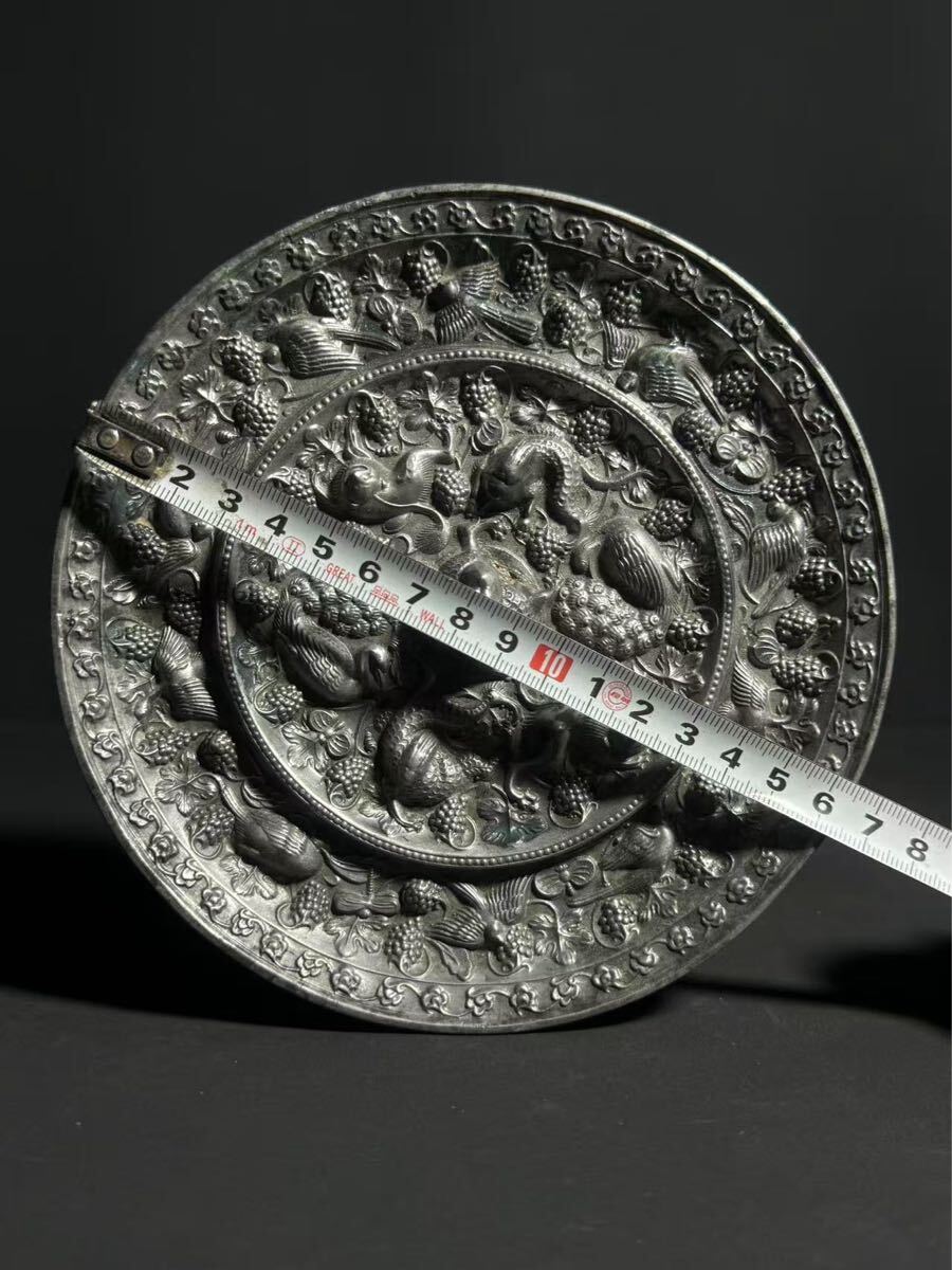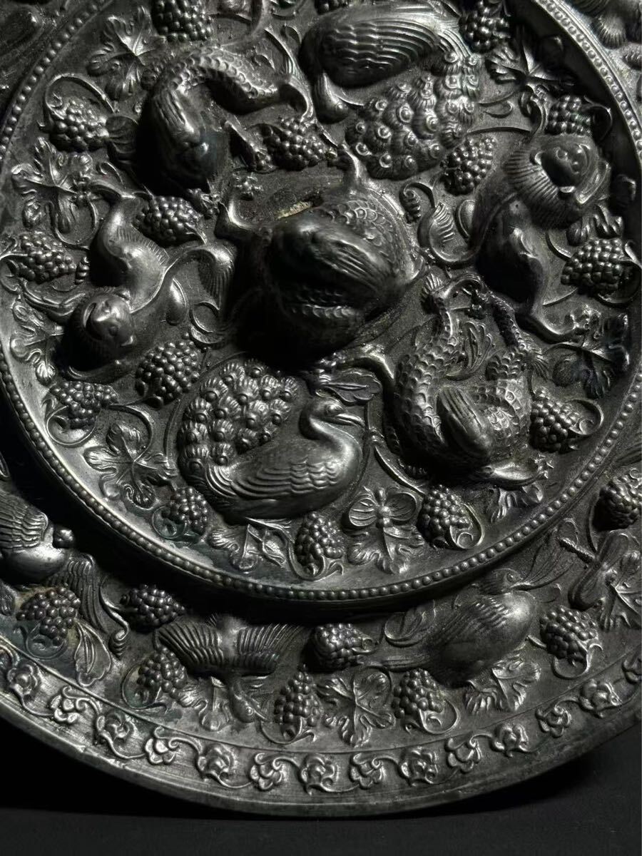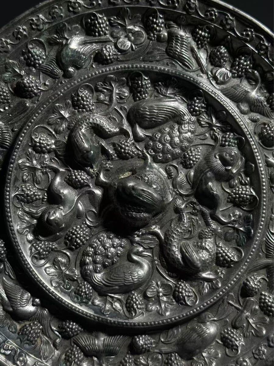 【竹華】中国古美術 古鏡 海獣葡萄鏡 銅鏡 唐時代 青銅鏡 円鏡 漢鏡 中国古玩 古玩 骨董 時代物 当時物 唐物 古銅 青銅器 sw9