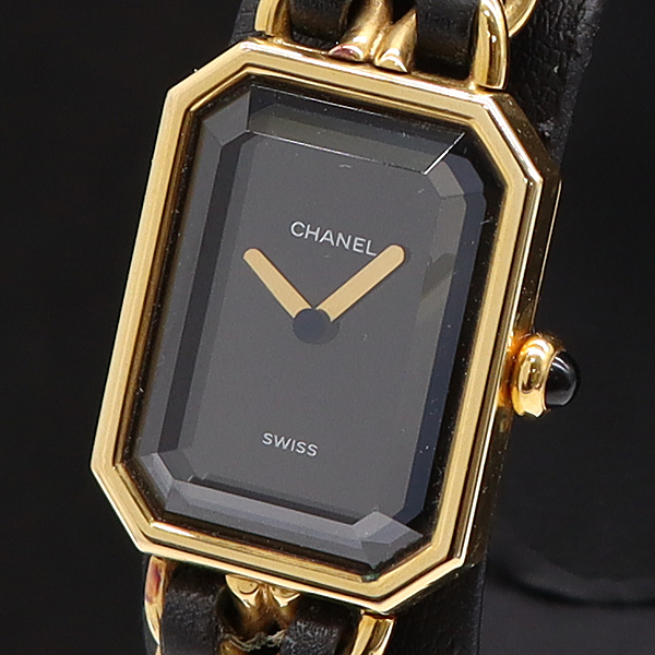 1円 稼働 シャネル プルミエールL QZ ブラック文字盤 レディース腕時計 6228310 10DIT KMR
