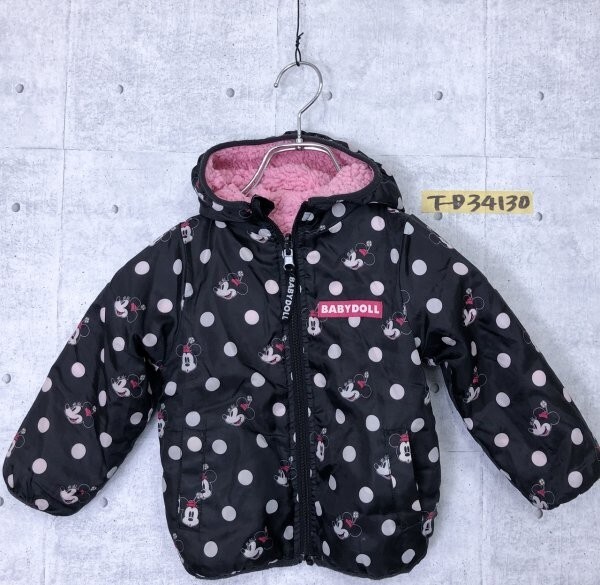 BABY DOLL ベビードール キッズ 女の子 ミニーマウス ボアフリース リバーシブル フード付き ジャケット 90 黒・ピンク です。