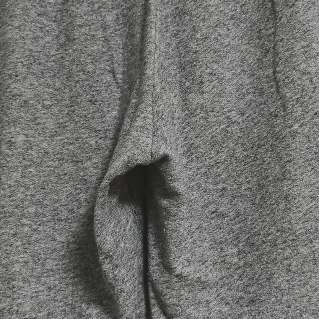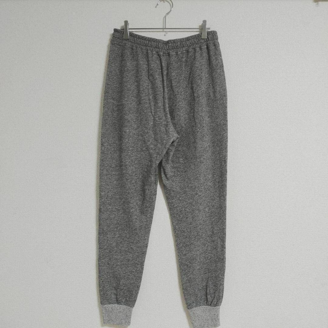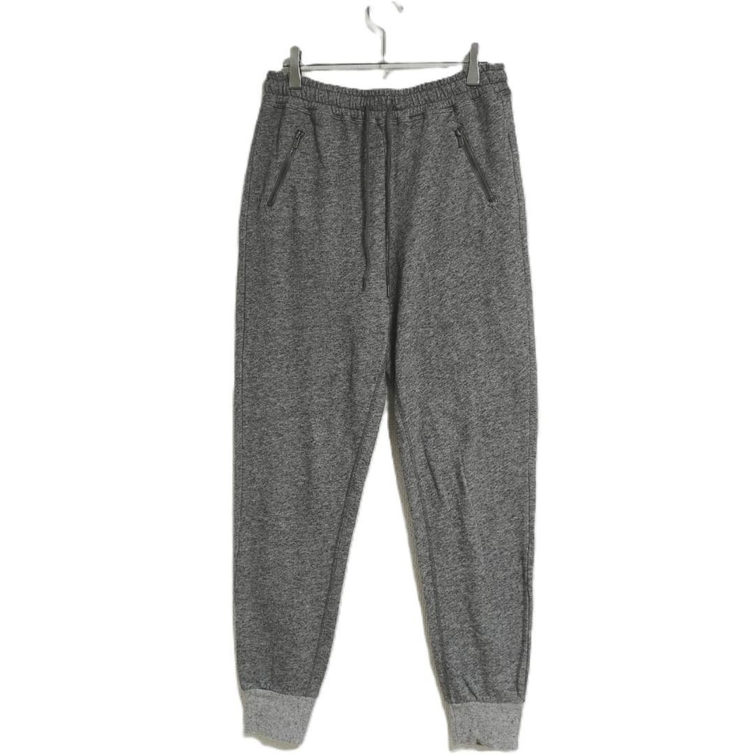 ジッパーポケット付きのグレーのスウェットパンツ、リブ裾デザインで快適な着心地。