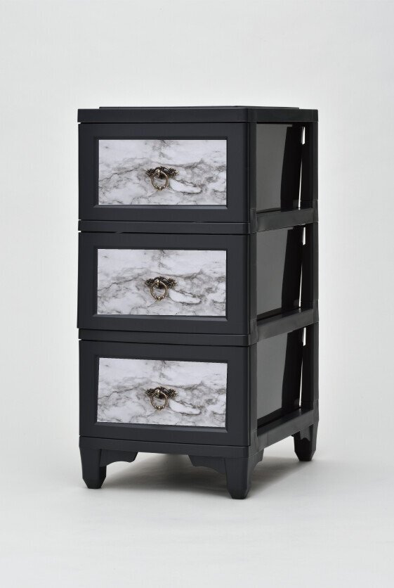 即決可@新品カドリーチェスト 3段 ブラック マーブル Premium | ||||||||||||