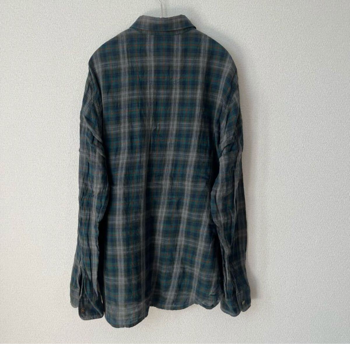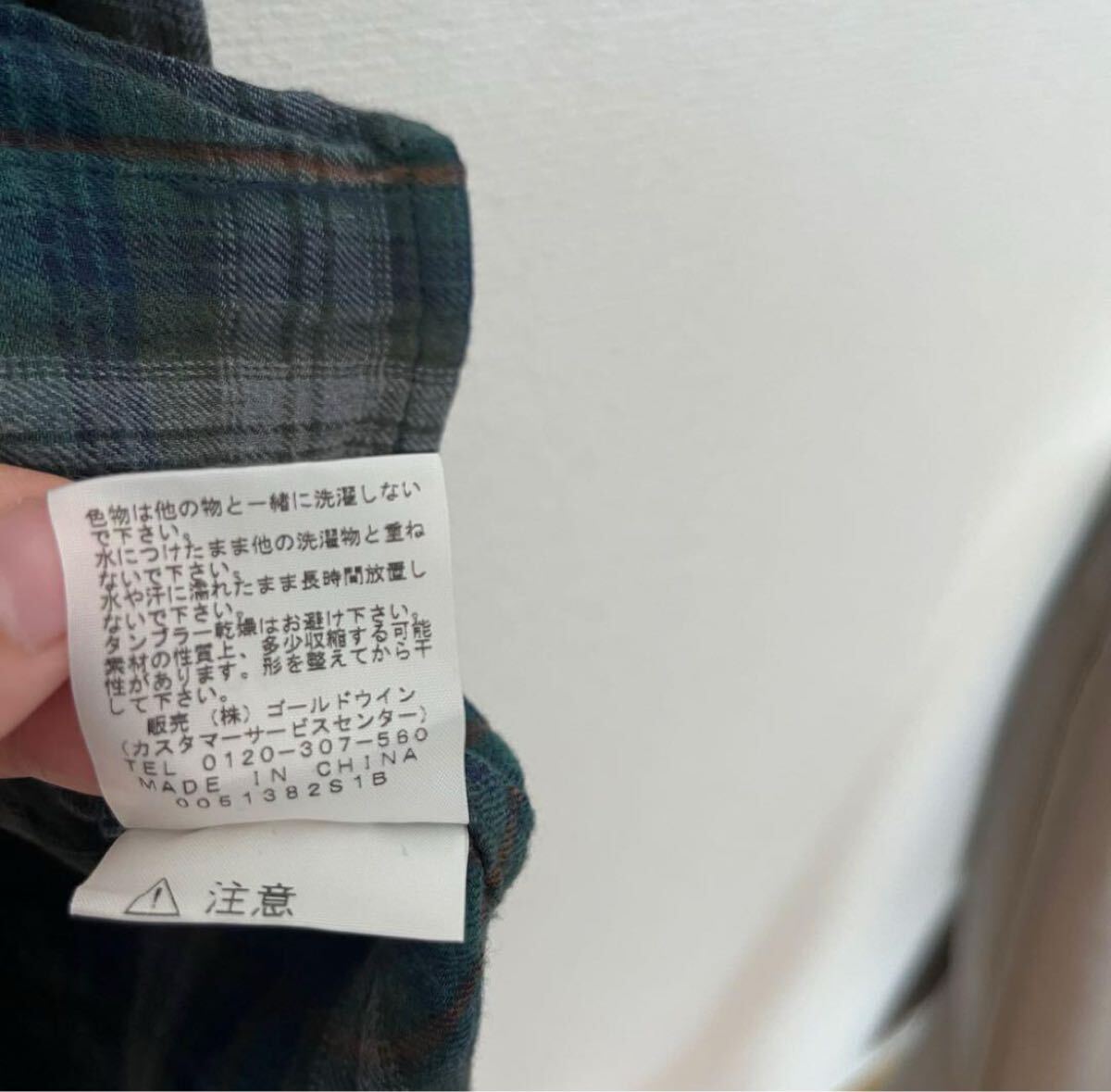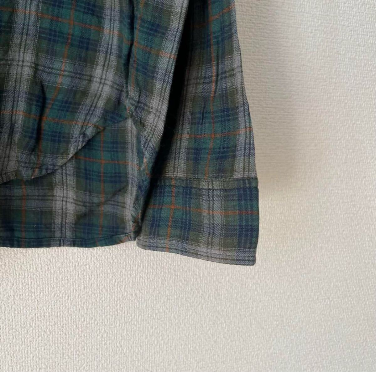 グリーン系のチェック柄で、Lサイズの長袖シャツです。