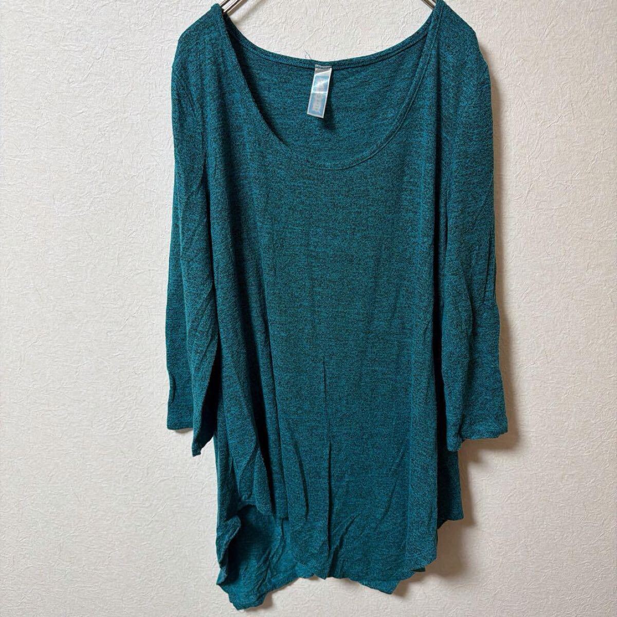古着 USA ヴィンテージ おでかけ ターコイズ 五分袖 レーヨン カットソー おしゃれ シンプル チュニック 長め