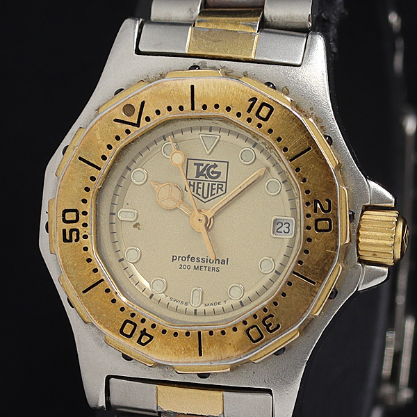 1円 稼働 タグホイヤー プロフェッショナル 935.408 QZ ゴールド文字盤 レディース腕時計 1927000 10NGB SMZ