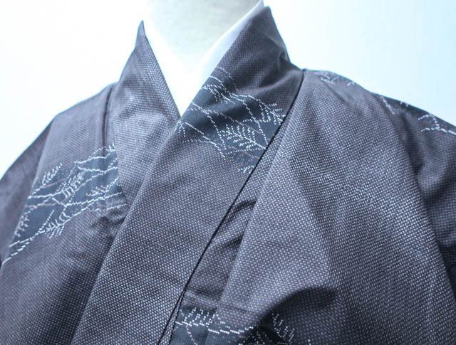 リサイクル商品ですが状態の良い綺麗なお品でございます。 地色は灰焦茶です。 1枚目の画像が近いお色かと思われます。 素材は正絹です。 |
