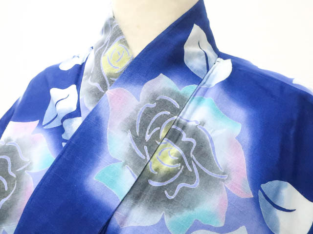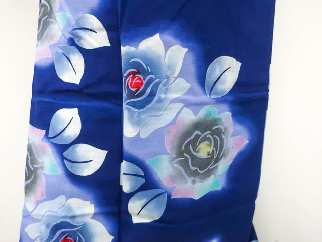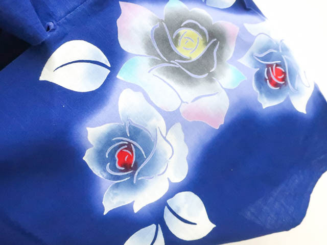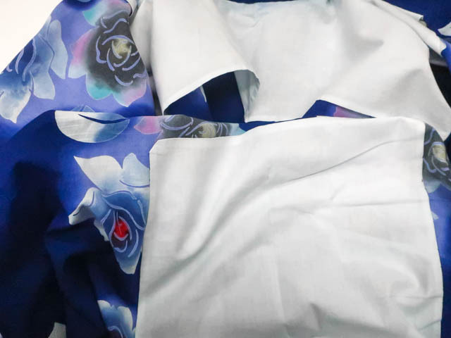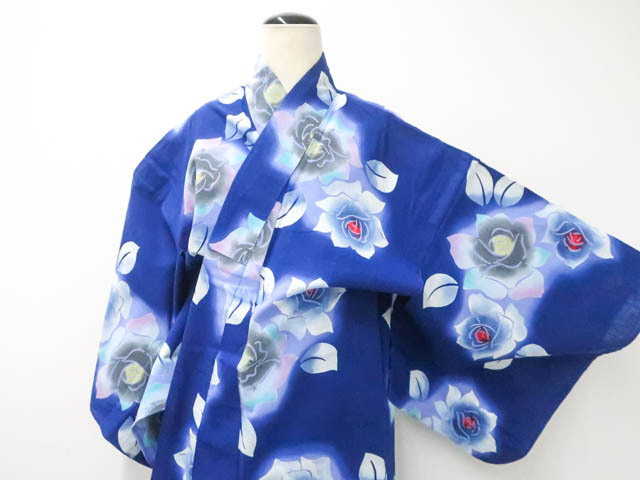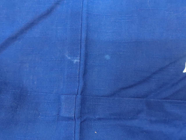 肩当て・居敷当て付です。リサイクル商品のため、肩当て居敷当てに染色移り、衿折れ山・衿裏・袖口に擦れ、背に小さい色抜けがございますがご着用いただけると存じます。 地色は青です。 1枚目の画像が近いお色かと思われます。 素材は綿です。 |