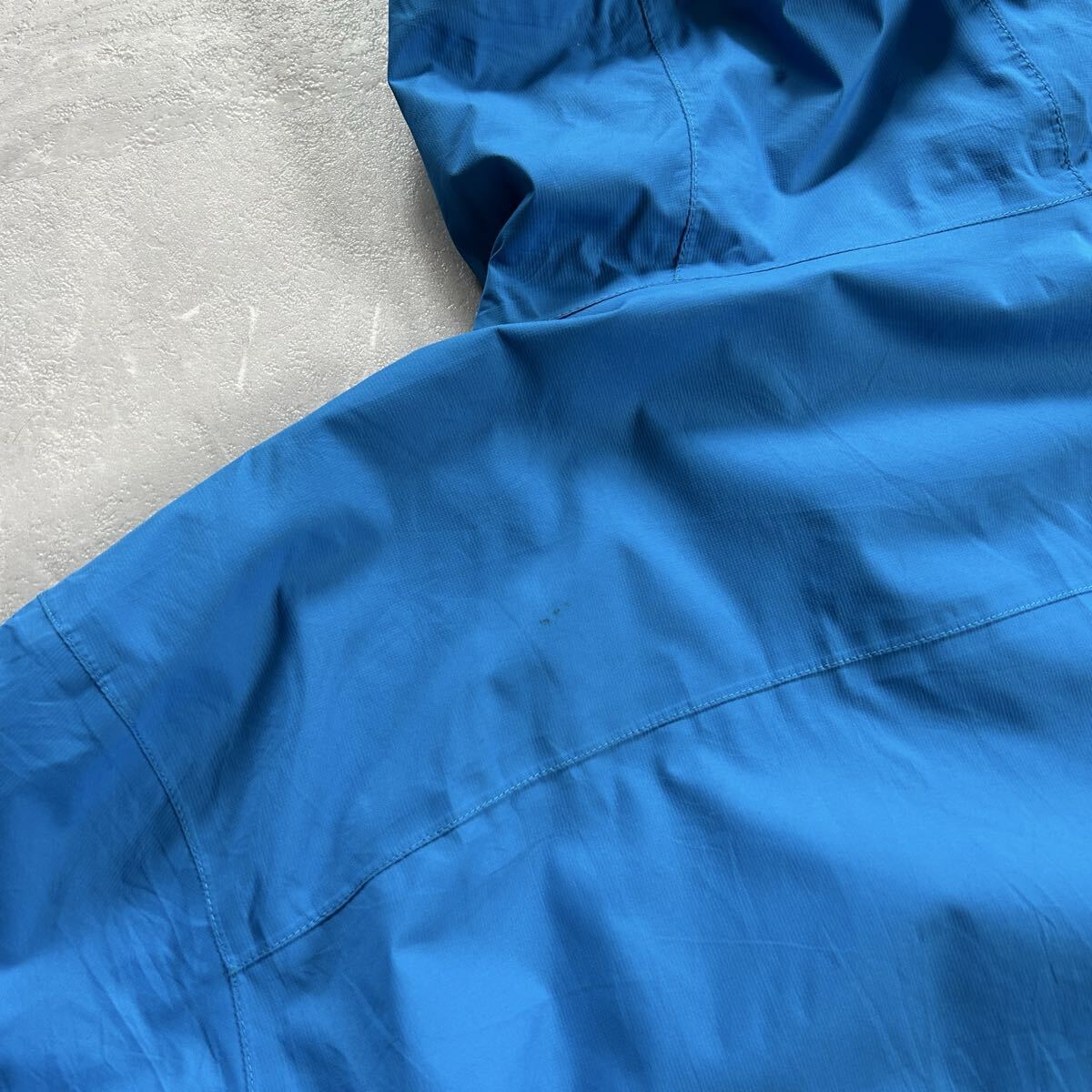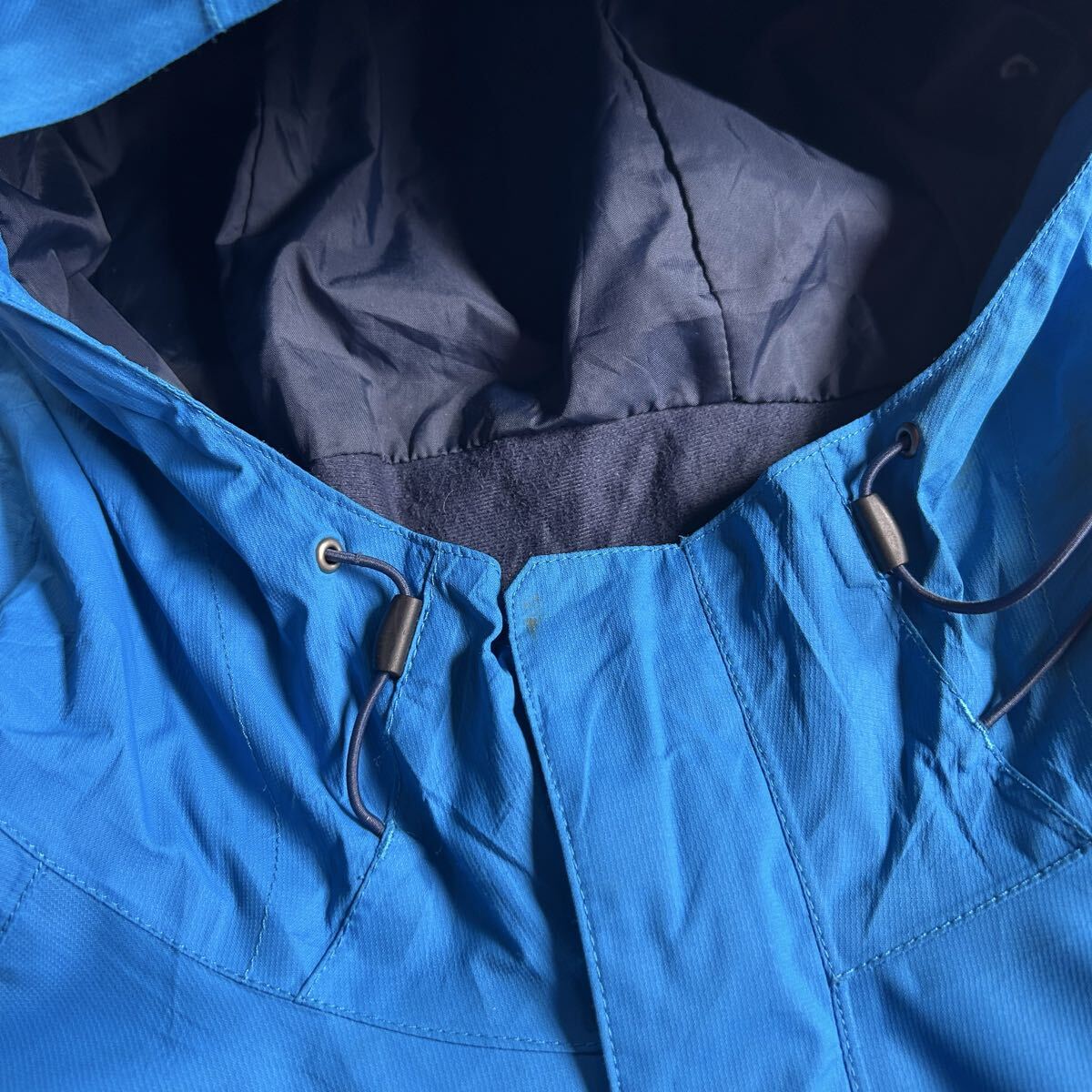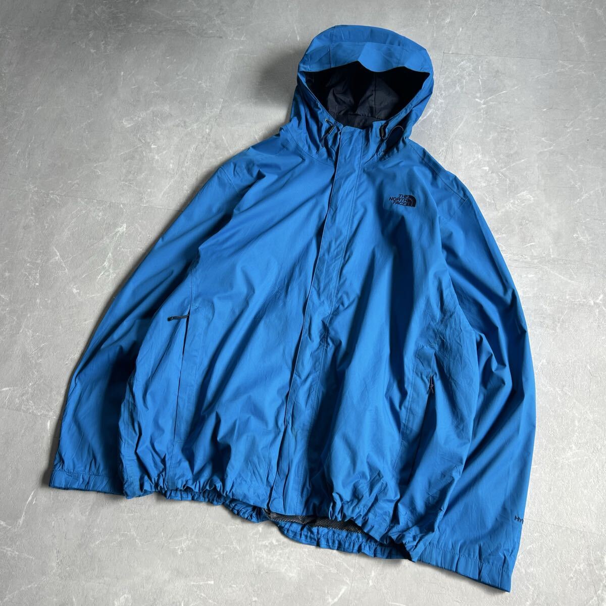 ノースフェイスのHYVENT(高い防水透湿性能を求める登山家やアスリート達の要望によって開発された素材)マウンテンパーカーになります。XXLサイズですが、ドローコード付きなので丈感など調節できボックスシルエットで着用できるのでおすすめです。