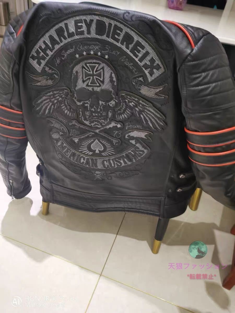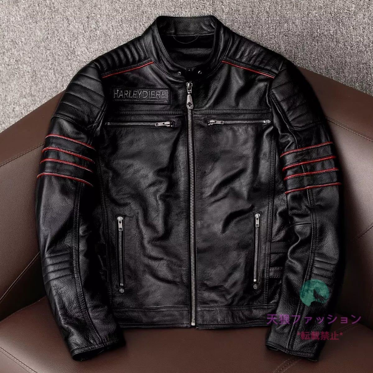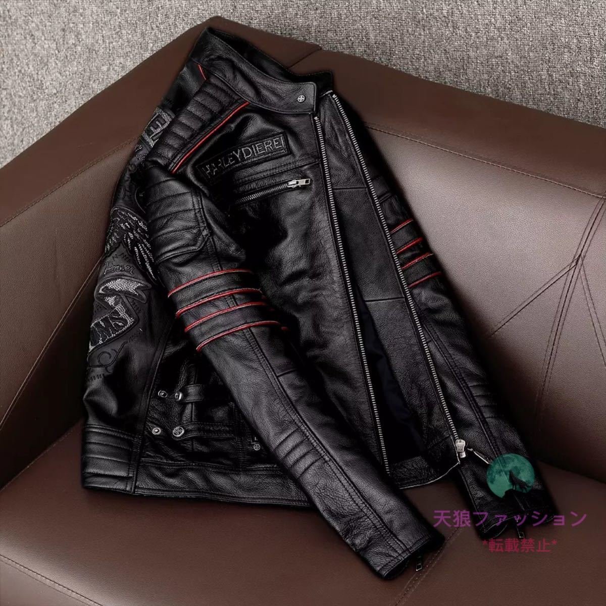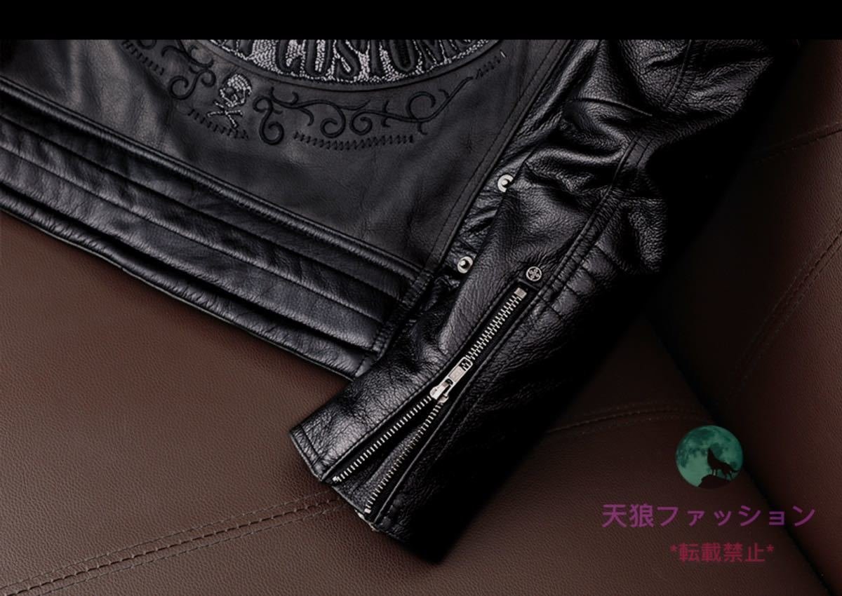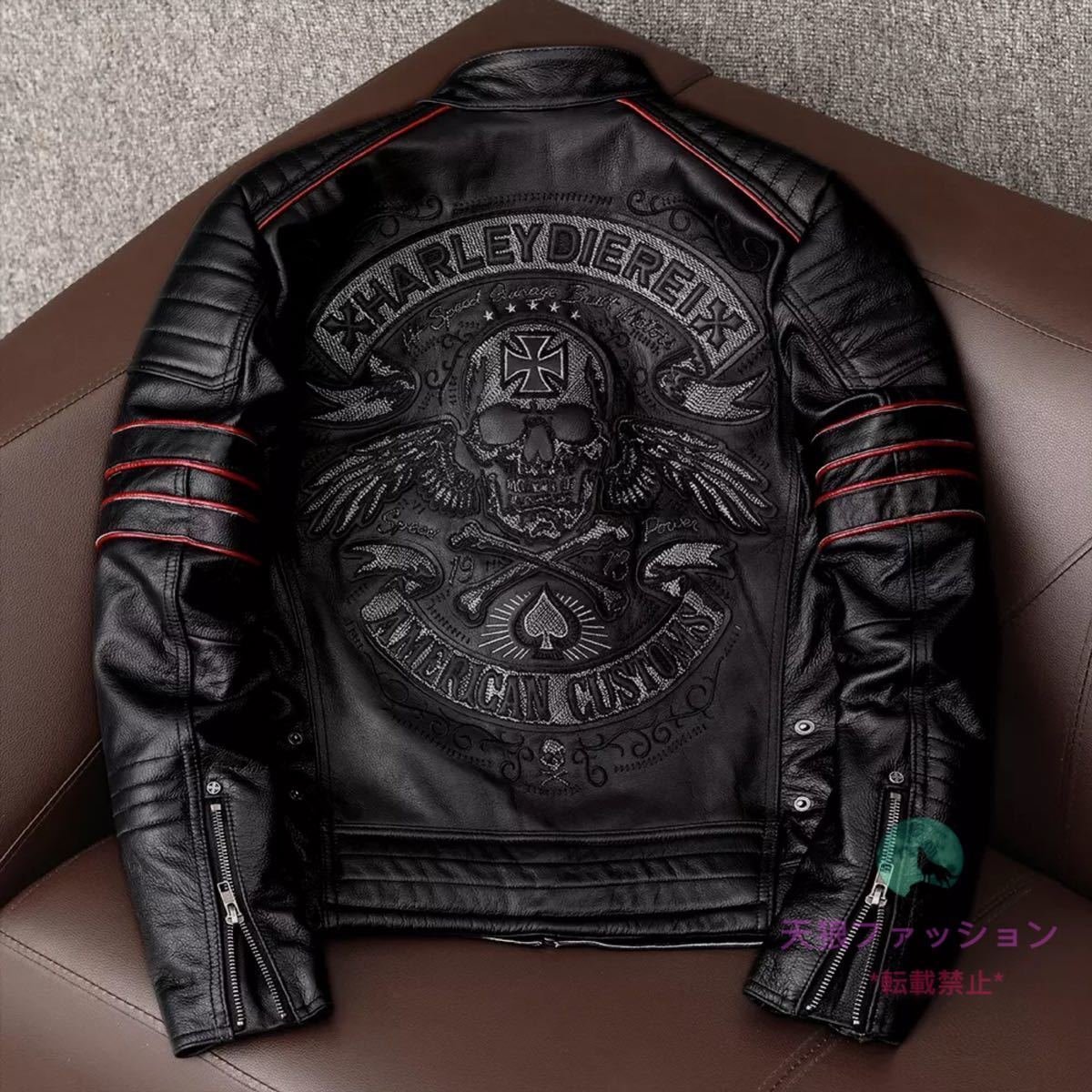 ●人気No.2 レザージャケット 本革 ライダース 機関車 スカル柄 バイクジャケット カウハイド 牛革 革ジャン メンズファッション S~5XL