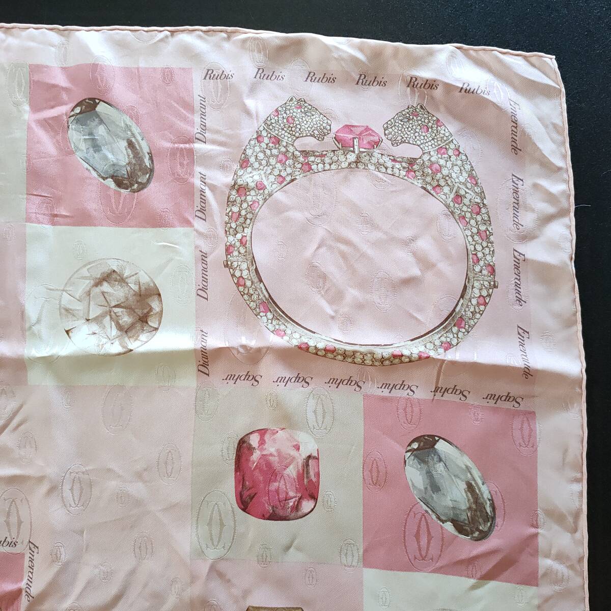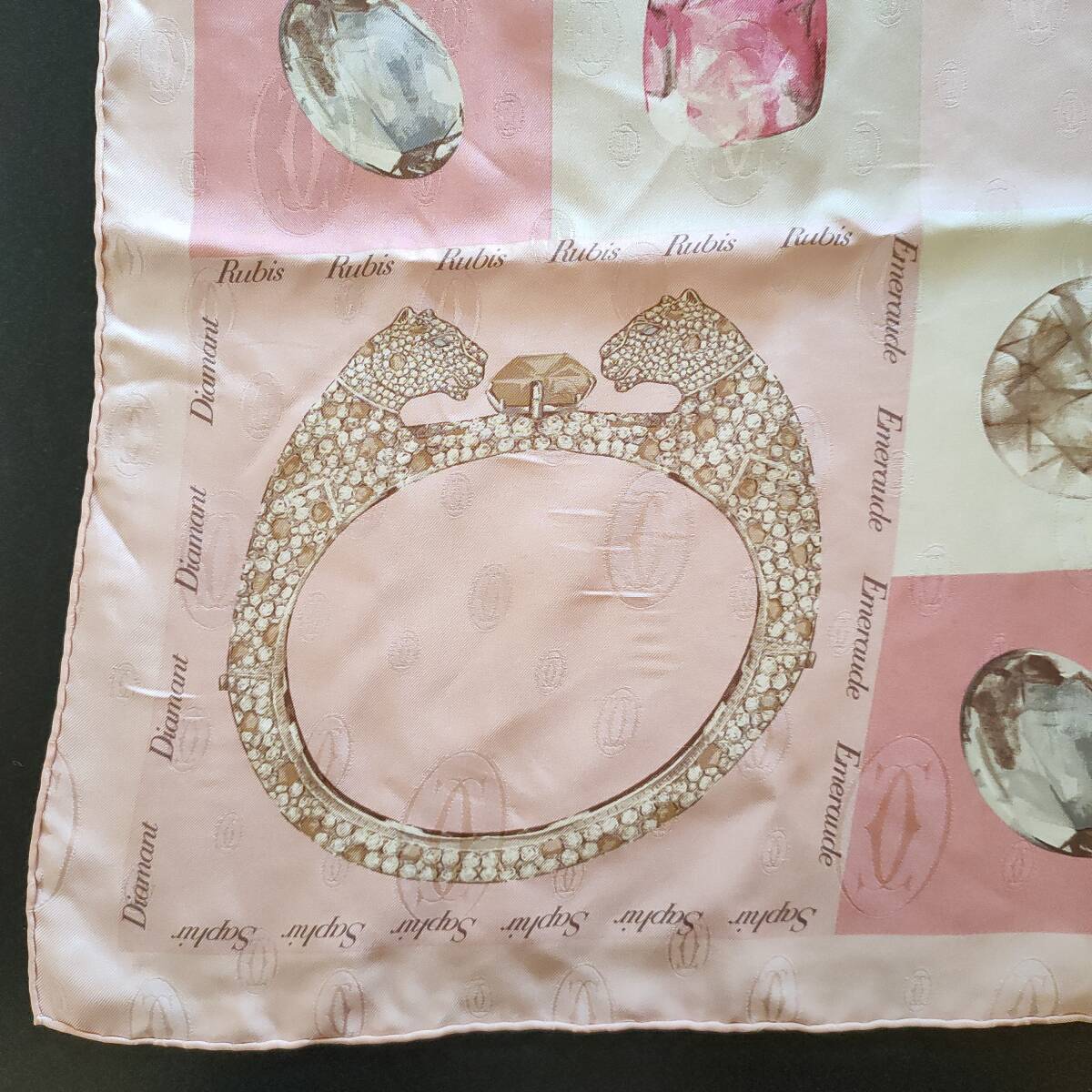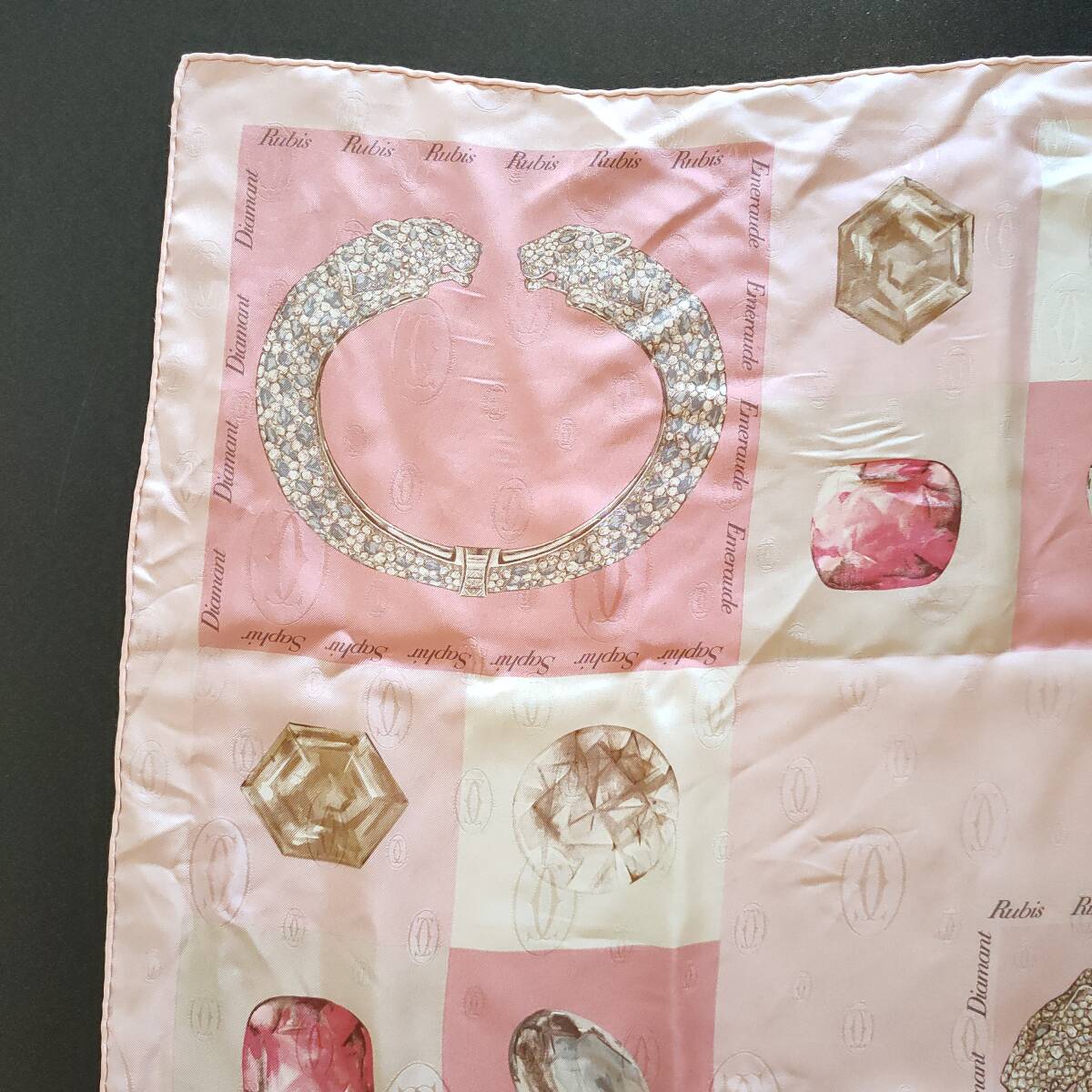 美品 Cartier カルティエ 宝石柄 大判 スカーフ ストール ショール レディース ピンク 約87×87cm