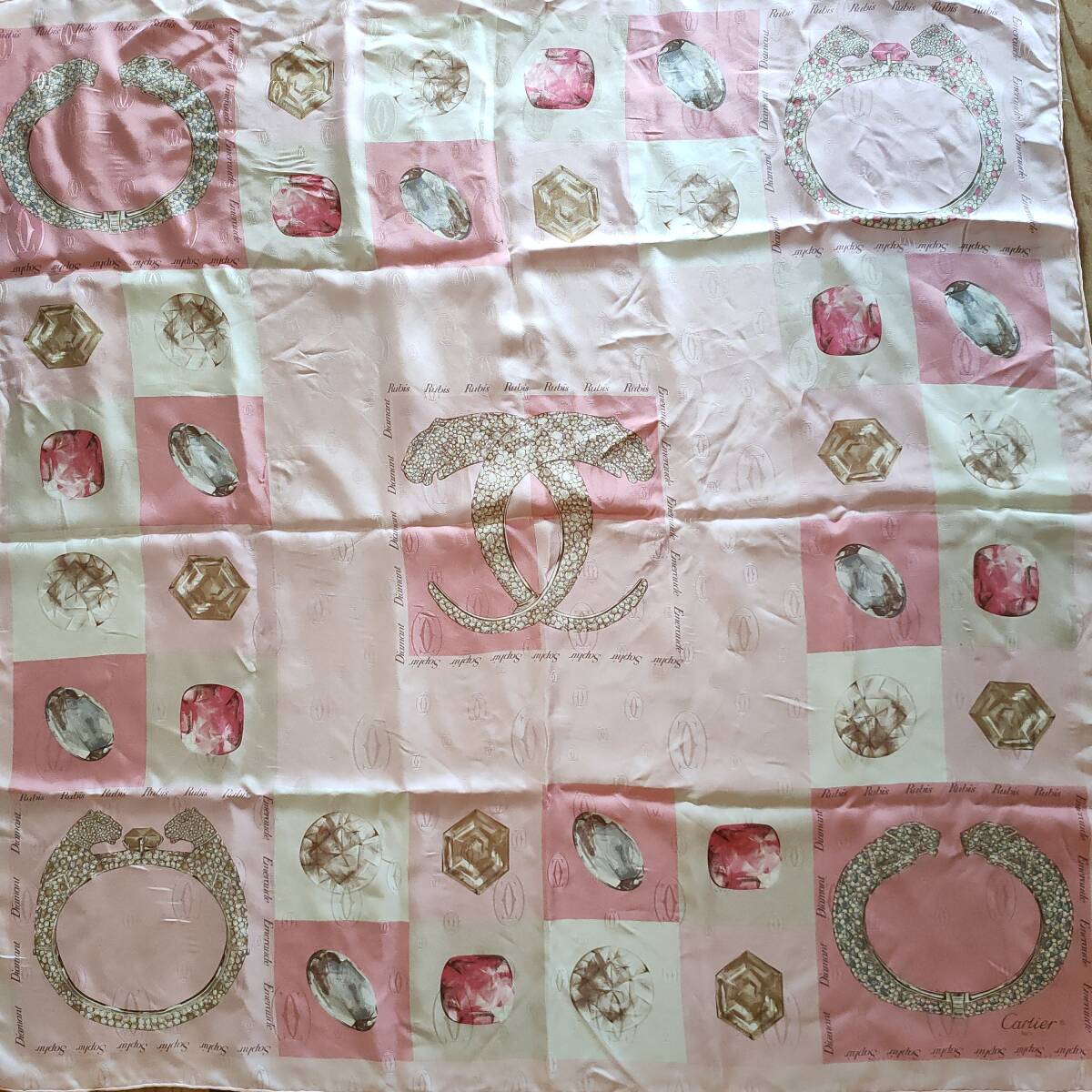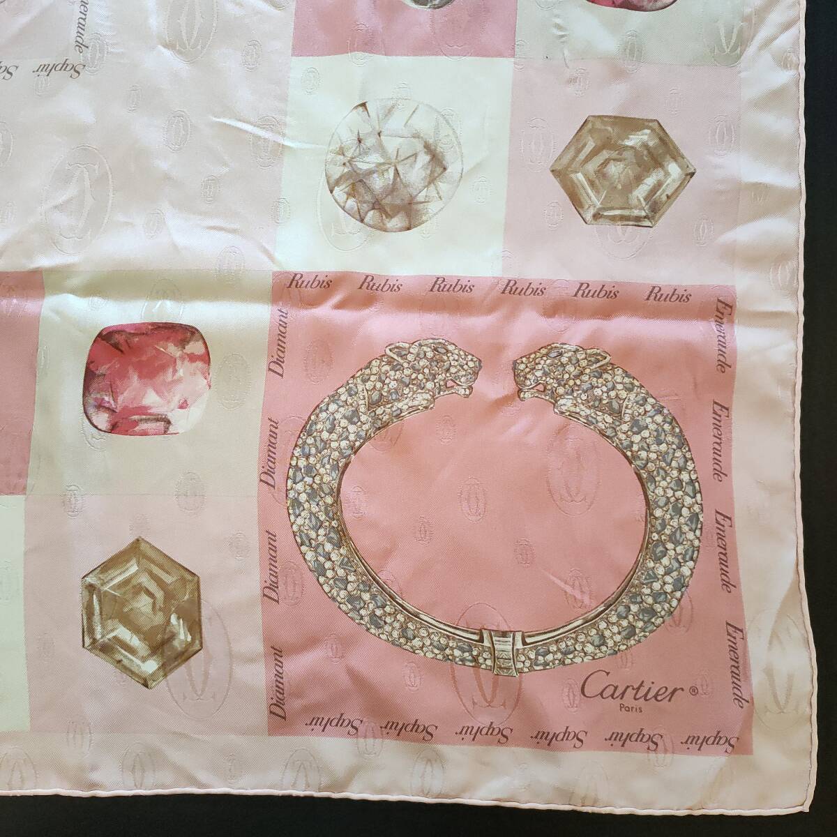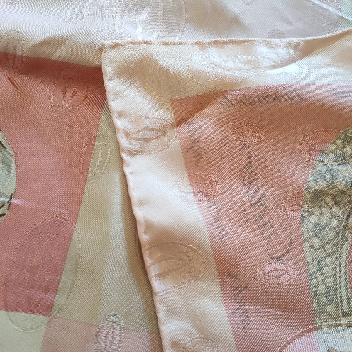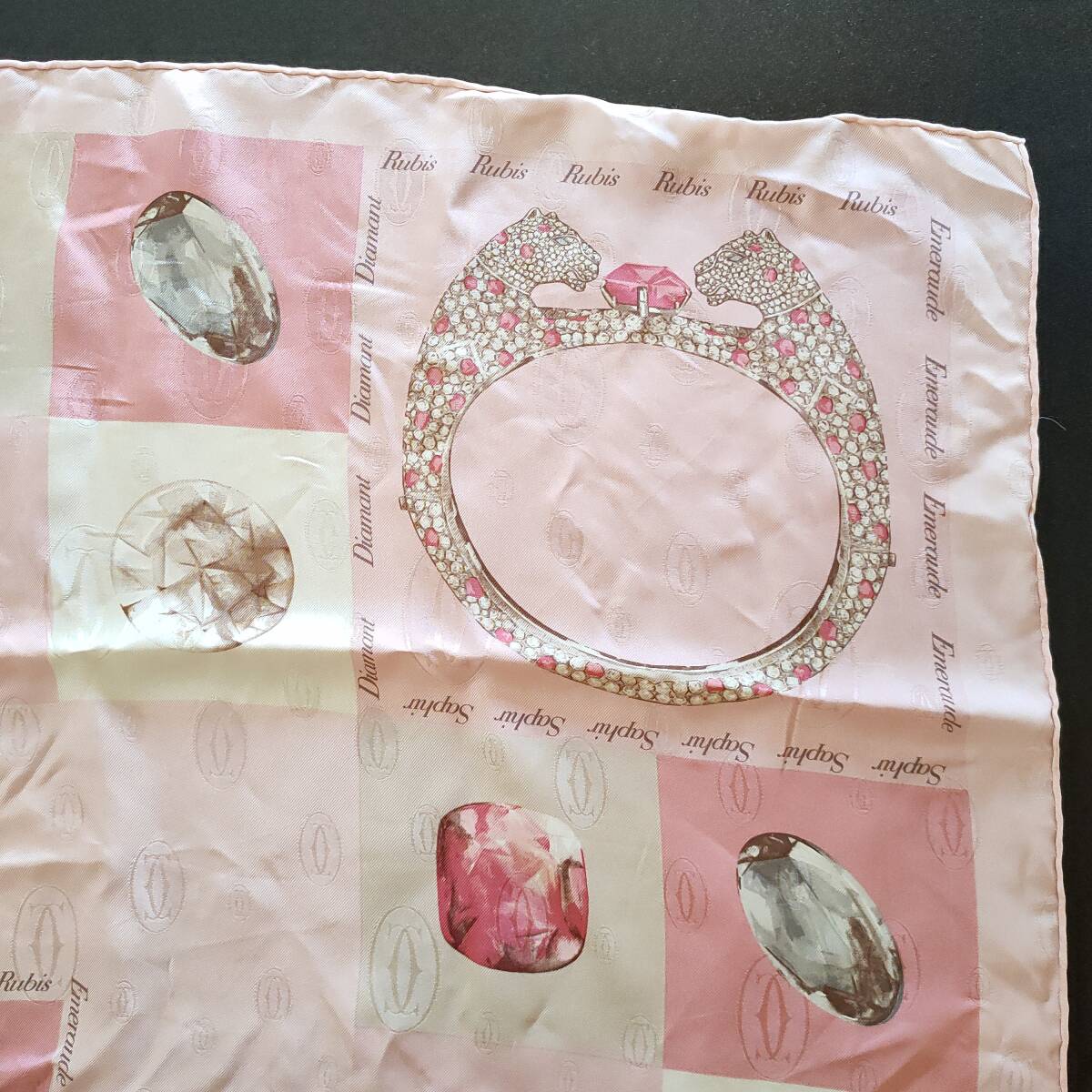 美品 Cartier カルティエ 宝石柄 大判 スカーフ ストール ショール レディース ピンク 約87×87cm