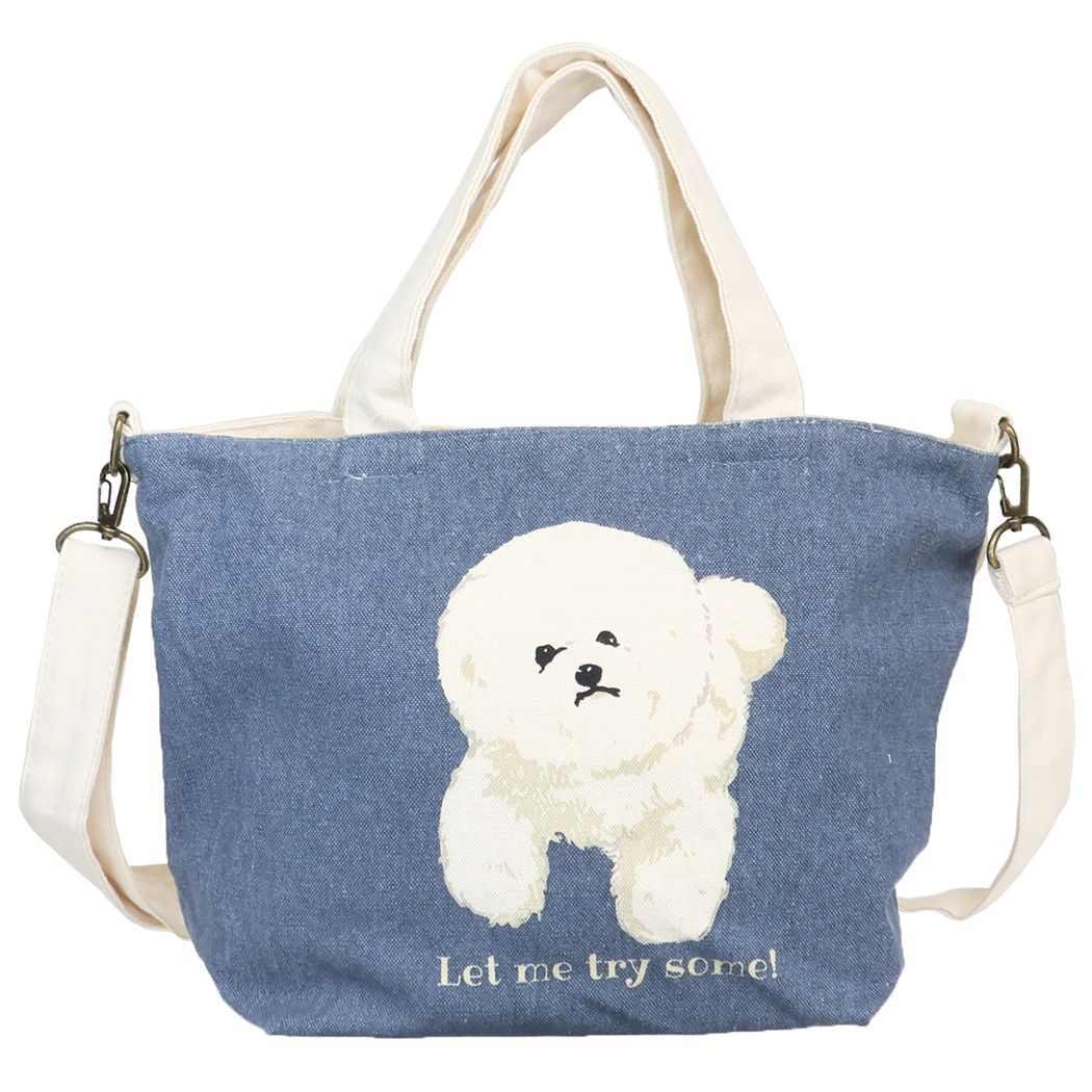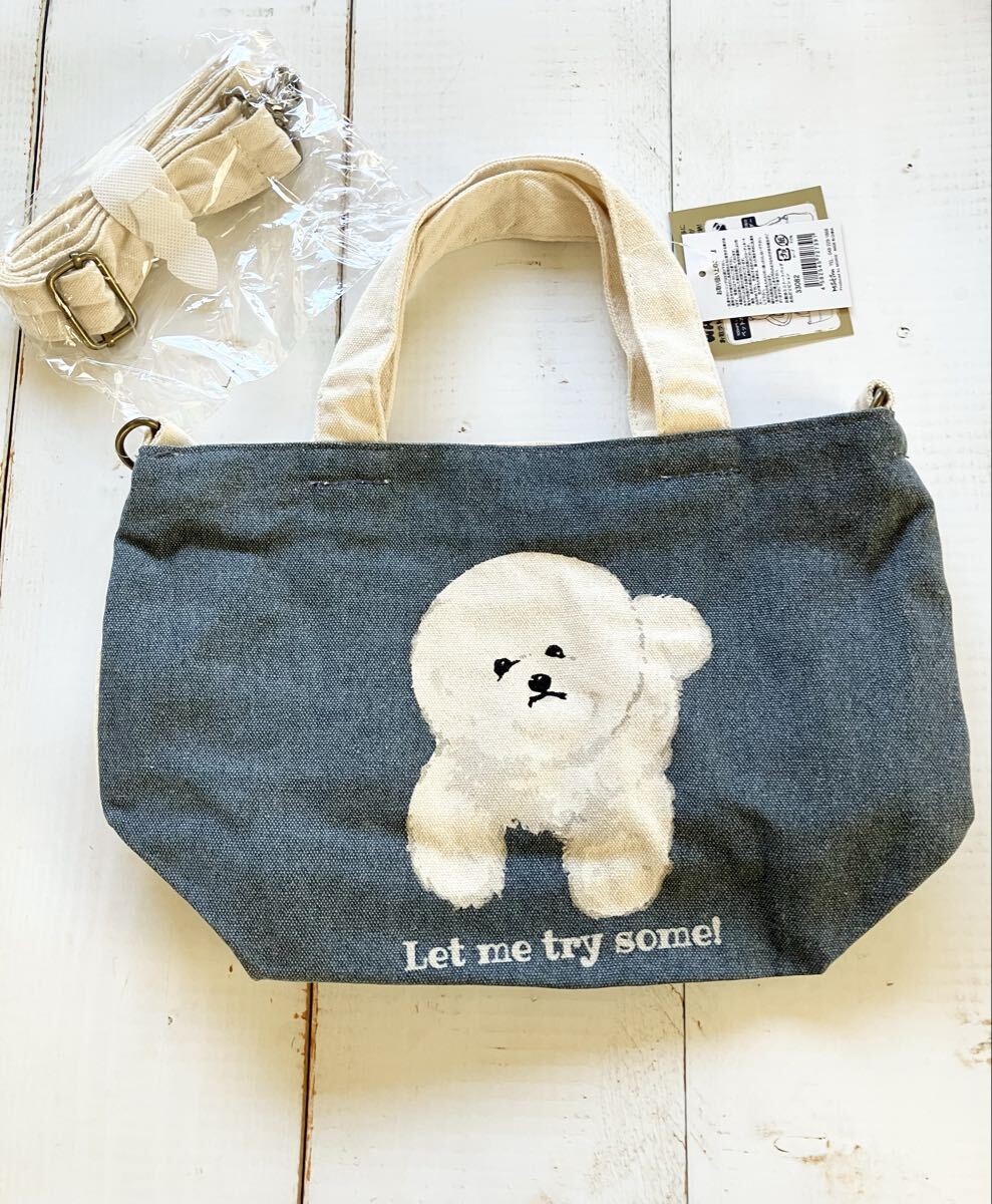 ミニトートバッグ♪ ランチトート ショルダー付き おねだりビション ビションフリーゼ ポケットたくさん 2wayバッグ
