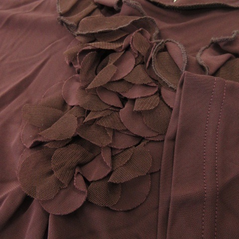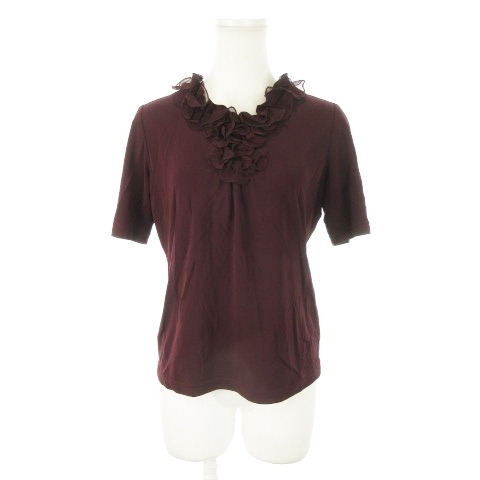 レリアン Leilian ブラウス カットソー フリルカラー 半袖 チュール ストレッチ 11 紫 ボルドー /MN17 レディース