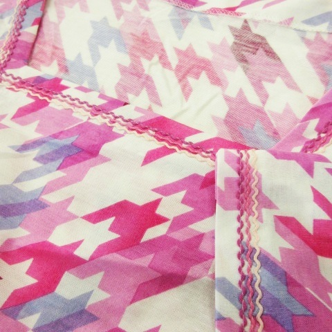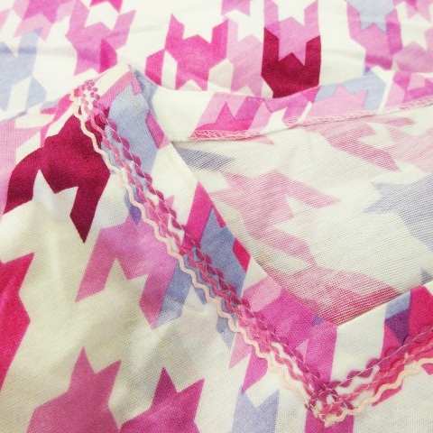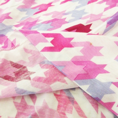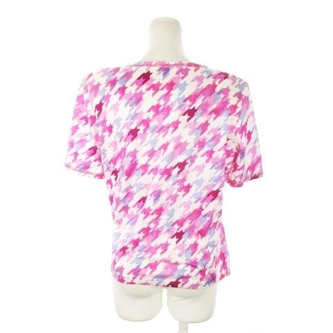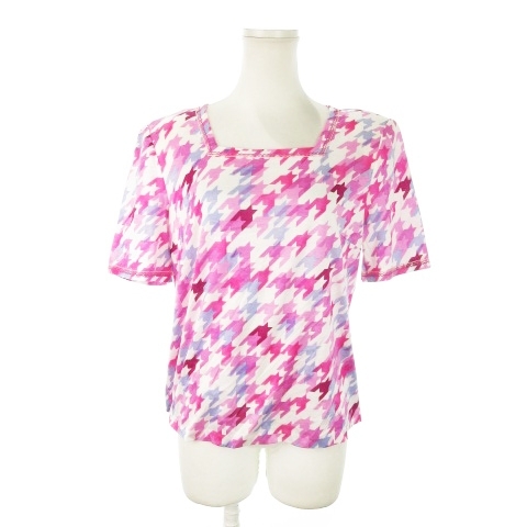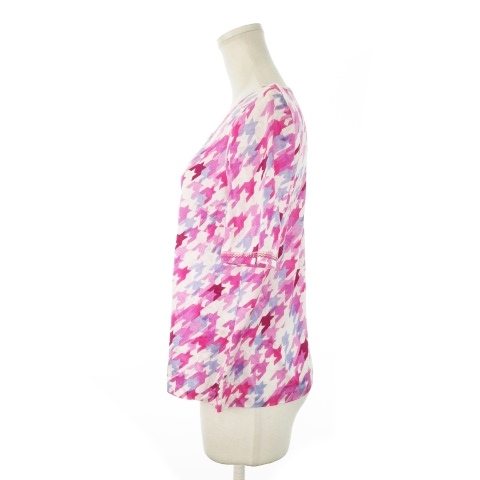 レリアン Leilian カットソー スクエアネック 半袖 千鳥格子 チェック 総柄 ステッチ 11 ピンク /MN20 レディース