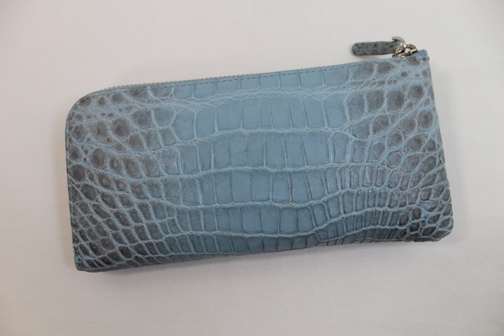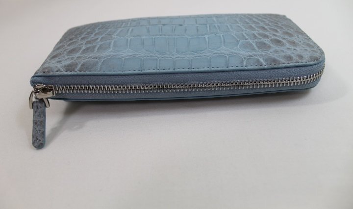 品名:クロコダイル本革 ヒマラヤ ブルー マット加工 L字ファスナー