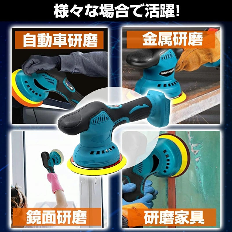 Y484 ポリッシャー 充電式 電動ポリッシャー ダブルアクションポリッシャー 6段階変速 コードレスポリッシャー コードレス 150mm コンパクト 軽量 車磨き 研磨器 研磨 ポリッシャー 洗車 車磨き 鏡面磨き ワックス バフ 充電式ポリッシャー