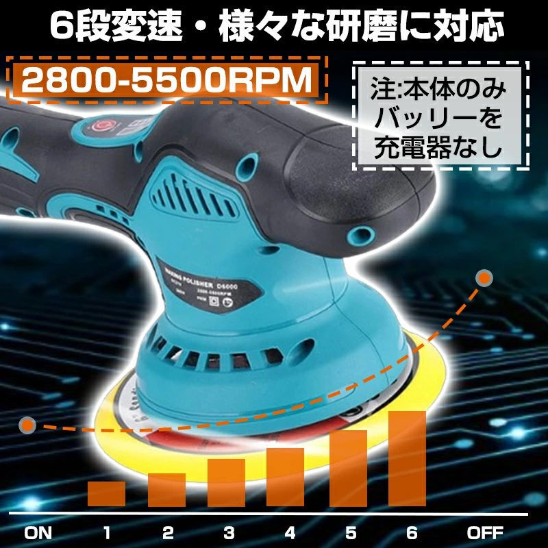 Y484 電動ポリッシャー 充電式ポリッシャー ダブルアクションポリッシャー 6段階変速 150mm コンパクト 車磨き 研磨 家庭用 艶出し 傷消し