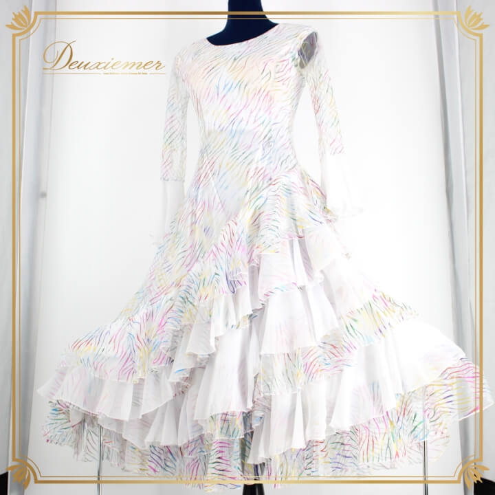 | 【商品名】社交ダンス衣装 ドレス 【サイズ】サイズフリー 平置き実測:総丈約111cm(裾~肩部まで)、肩幅約36cm、身幅約34cm、ウエスト約30cm~ ※実測の為、多少の誤差はご了承ください 【仕様】 ・ファスナー仕様 ・伸縮性有り ・肩パッド無し ・胸パッド有り 【品質表示】 ナイロン ------------------------------------ 【ポイント】 ▽ICHIOKU イチオク ▽ホワイトを基調とした華やかドレス ▽白地に映えるカラフル模様 ------------------------------------ 【撮影時使用トルソー】 種 類:女性用トルソー9号 (一般的に使用されるサイズです) サイズ:肩先~床約135cm(身長約160cm)、肩幅約37cm、バスト約88cm、ウエスト約66cm、ヒップ約89cm |