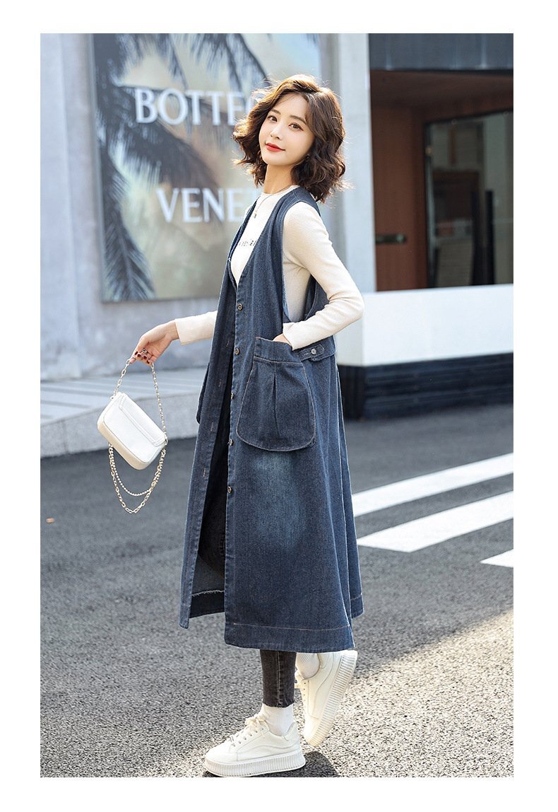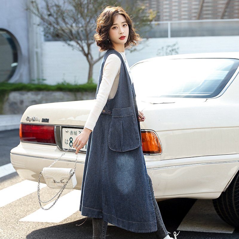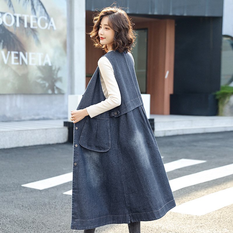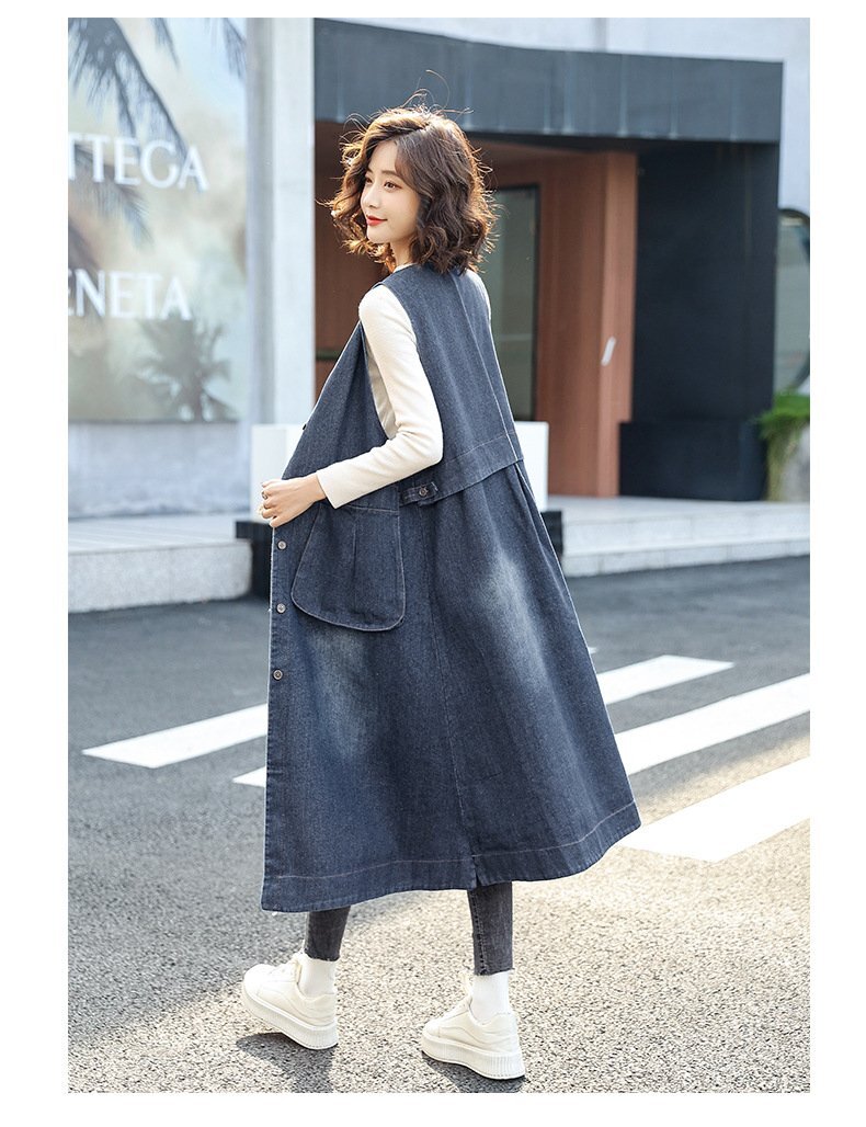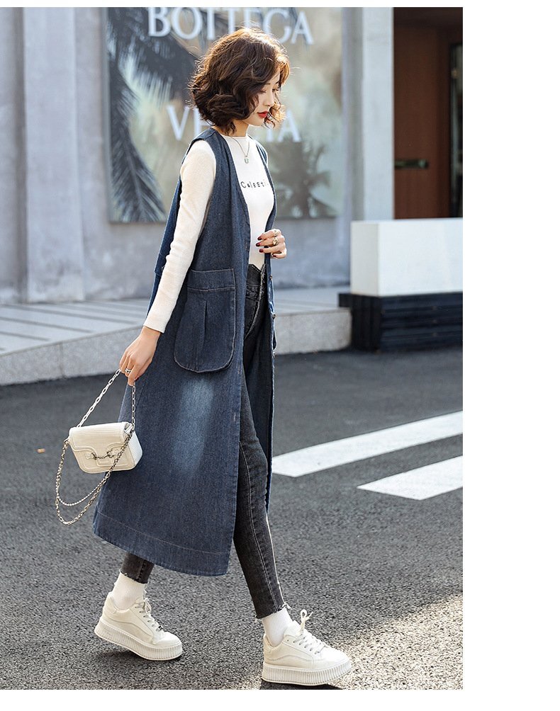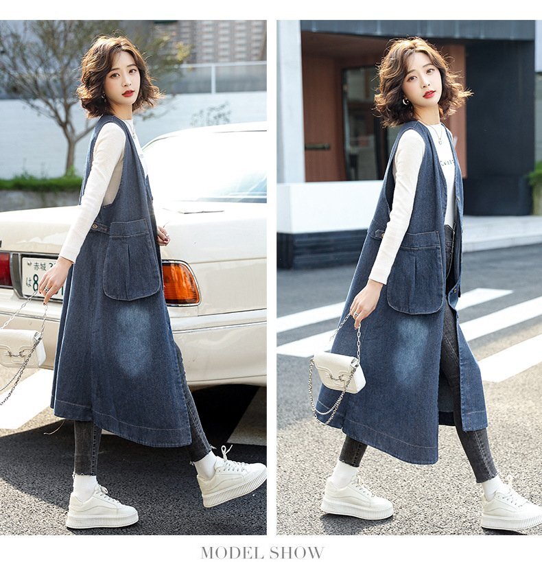 レディース ベスト デニム ベスト ジャケット パーカー ノースリーブ ロングベスト 袖なし ベスト チョッキ ゆったり ★XLサイズ