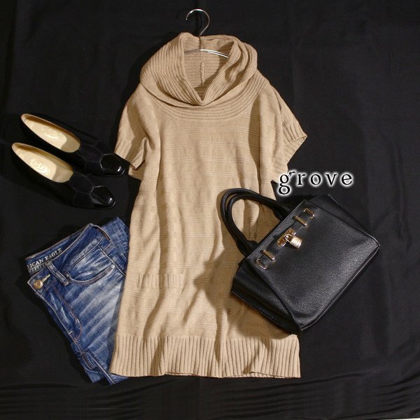 美品 (株)ワールド grove グローブ 綺麗め オフタートルネック ニット プルオーバー M 春 秋 25A10