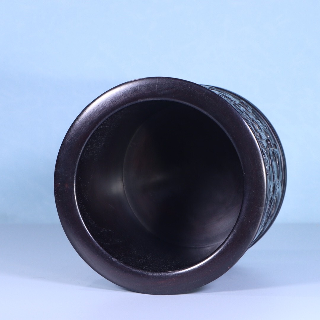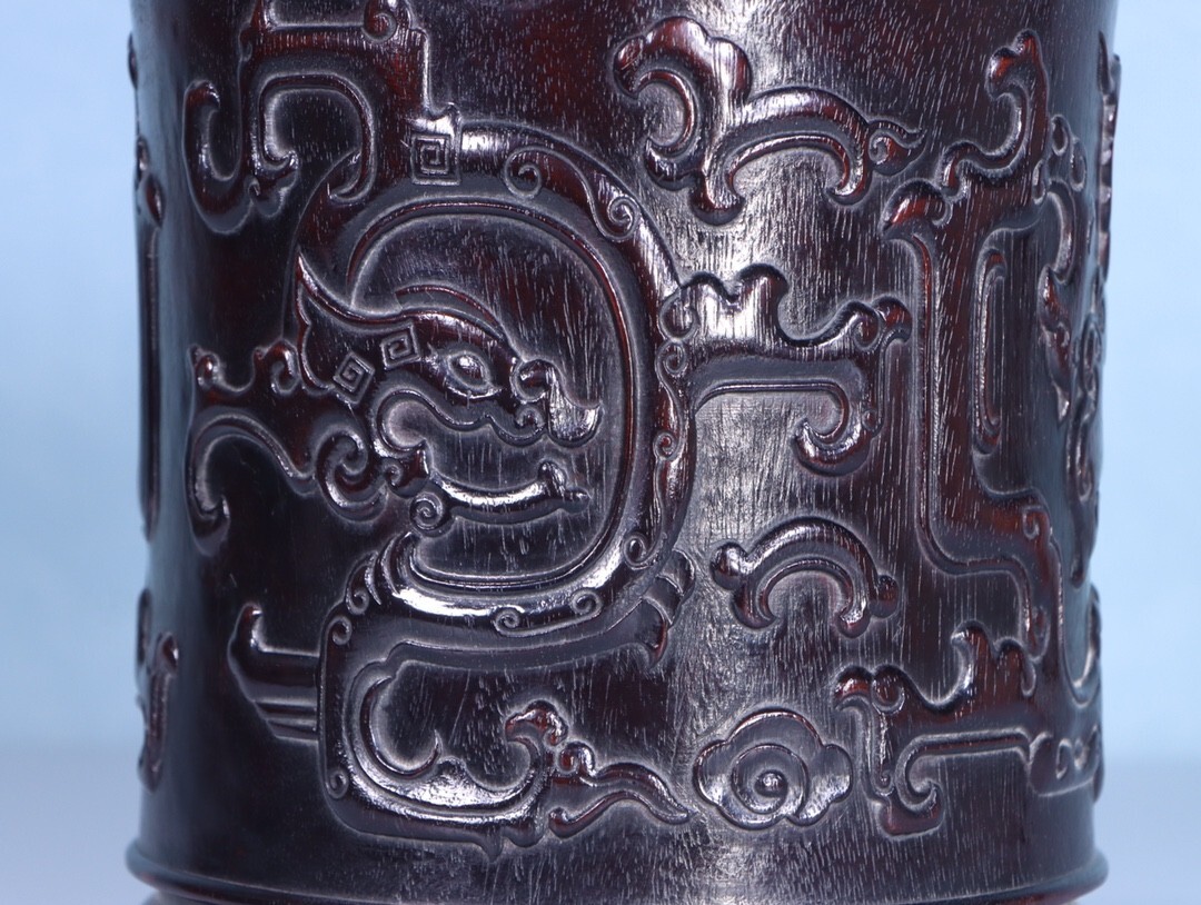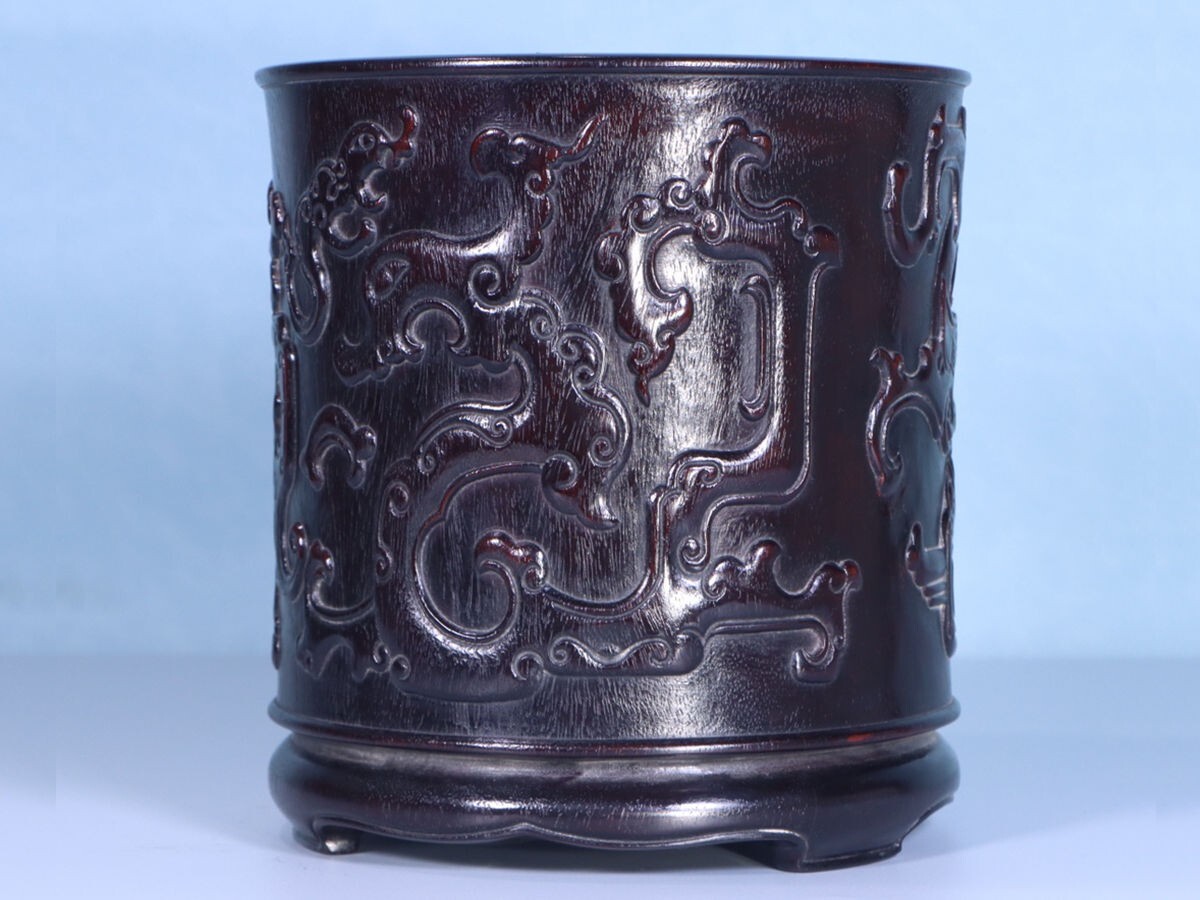 「清時代 老紫檀の木 彫り 拐子龍紋文房筆筒」極細工 擺件 賞物 古美術 骨董品 旧蔵出