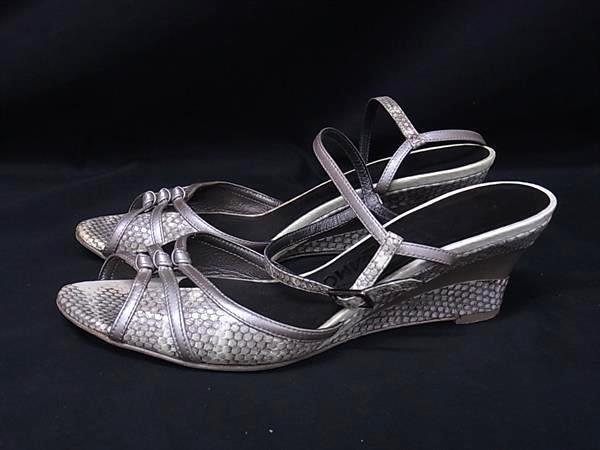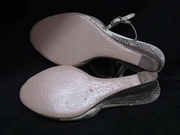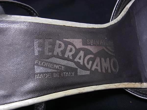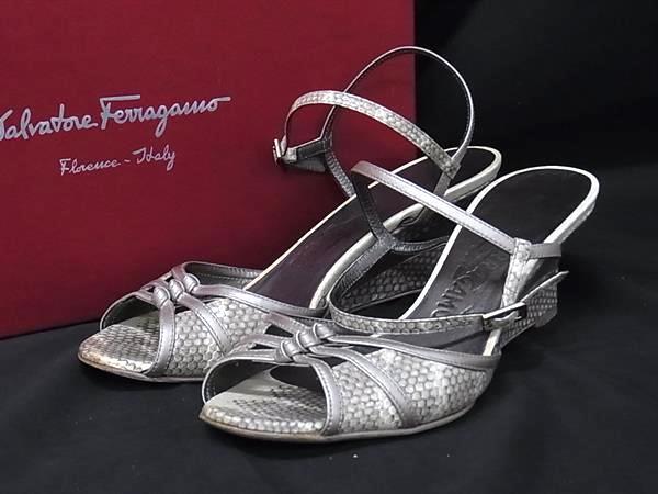 ■美品■ Salvatore Ferragamo フェラガモ パイソン型押しレザー ヒール サンダル 靴 シューズ グレージュ系×アイボリー系 DK1104