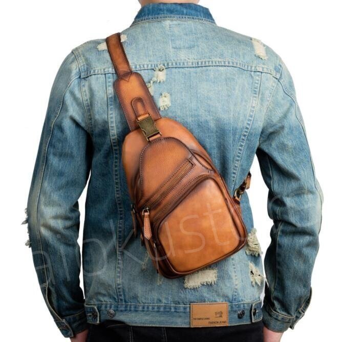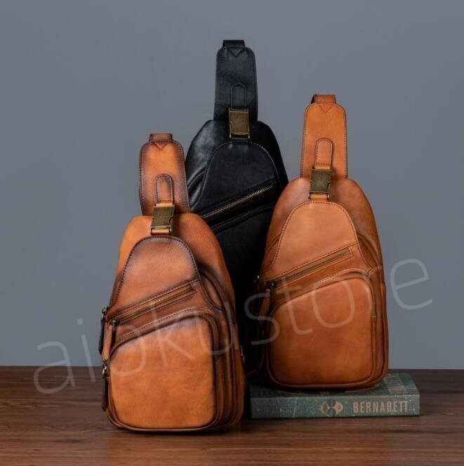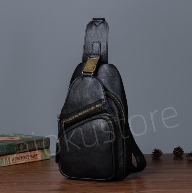 ヌメ革 ボディバッグ ワンショルダー 本革 肩掛け 斜めがけ チェストバッグ メンズバッグ 牛革鞄 アウトドア ブラック##CO48