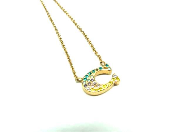 COACH コーチ ラインストーン ネックレス ペンダント アクセサリー レディース メンズ ゴールド系×マルチカラー DH0055
