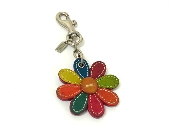 COACH コーチ レザー×キャンバス フラワー 花 キーホルダー キーリング バッグチャーム レディース マルチカラー DK6805