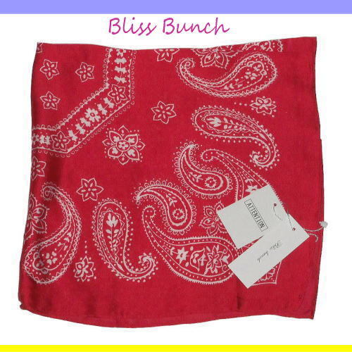 未使用品◆Bliss Bunch◆ ペイズリーバンダナ柄 スカーフ ◆赤 ローズレッド◆60×60cm■シルク風のシャイニー感 ポリエステル製