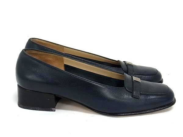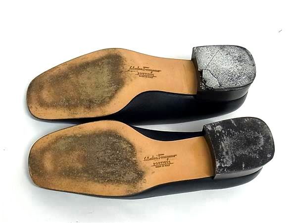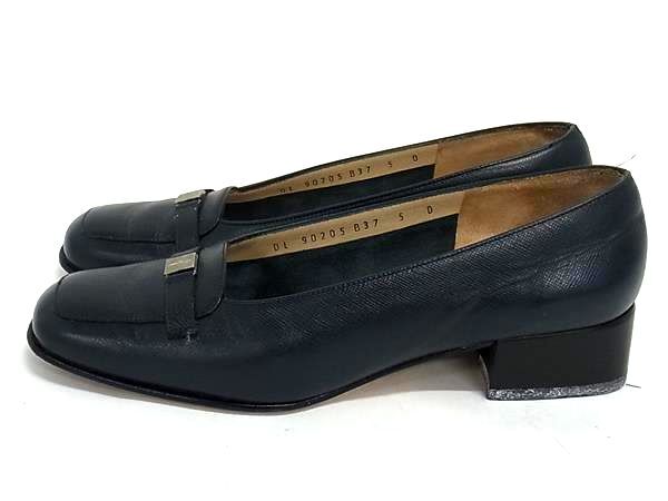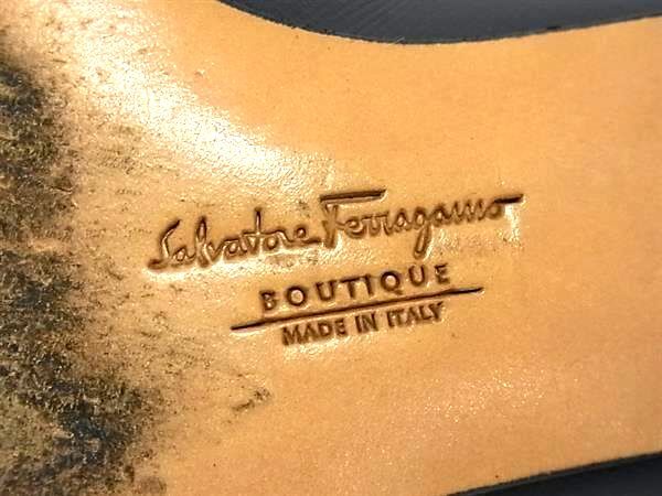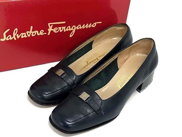 Salvatore Ferragamo フェラガモ レザー ヒール パンプス 表記サイズ 5 (約22.5cm) 靴 シューズ レディース ネイビー系 DG8933