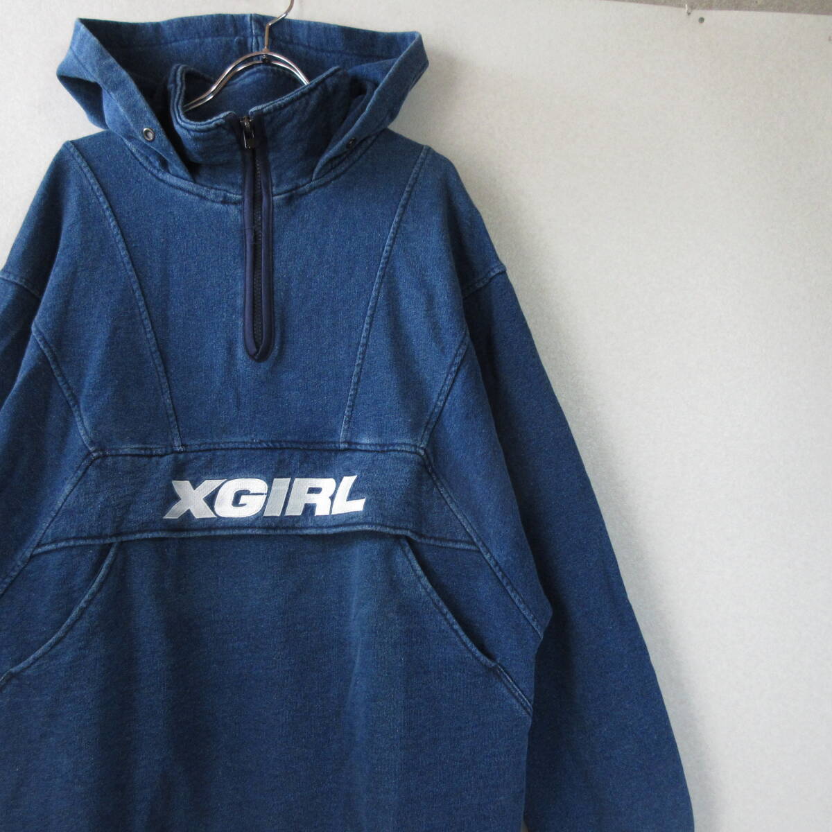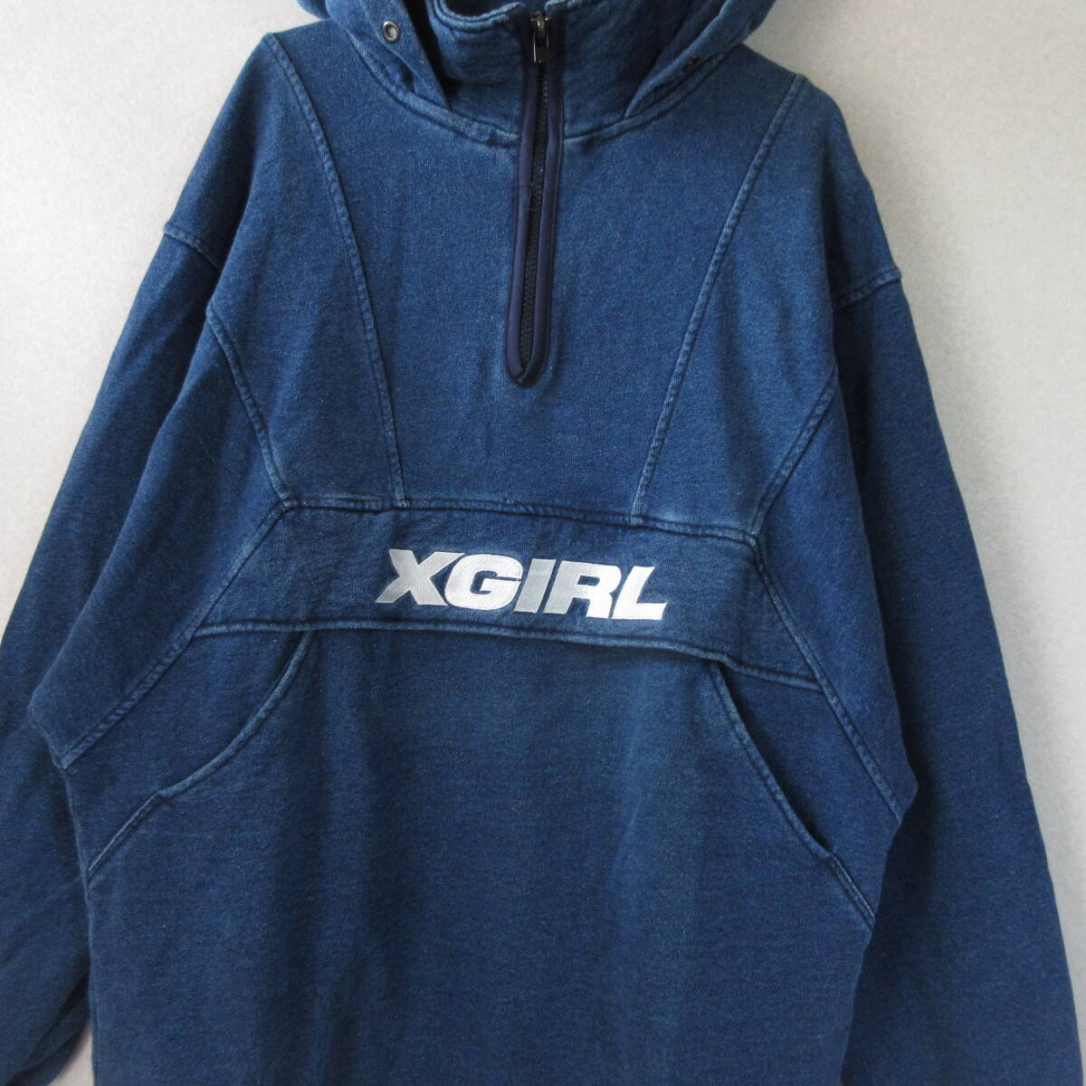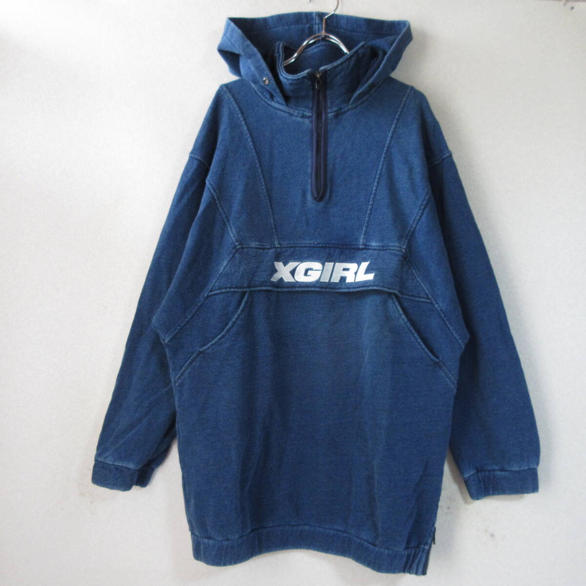 ○良品 X-GIRL エックスガール◆ANORAK SWEAT DRESS ロング丈 インディゴ染め 05174905◆レディース サイズ1