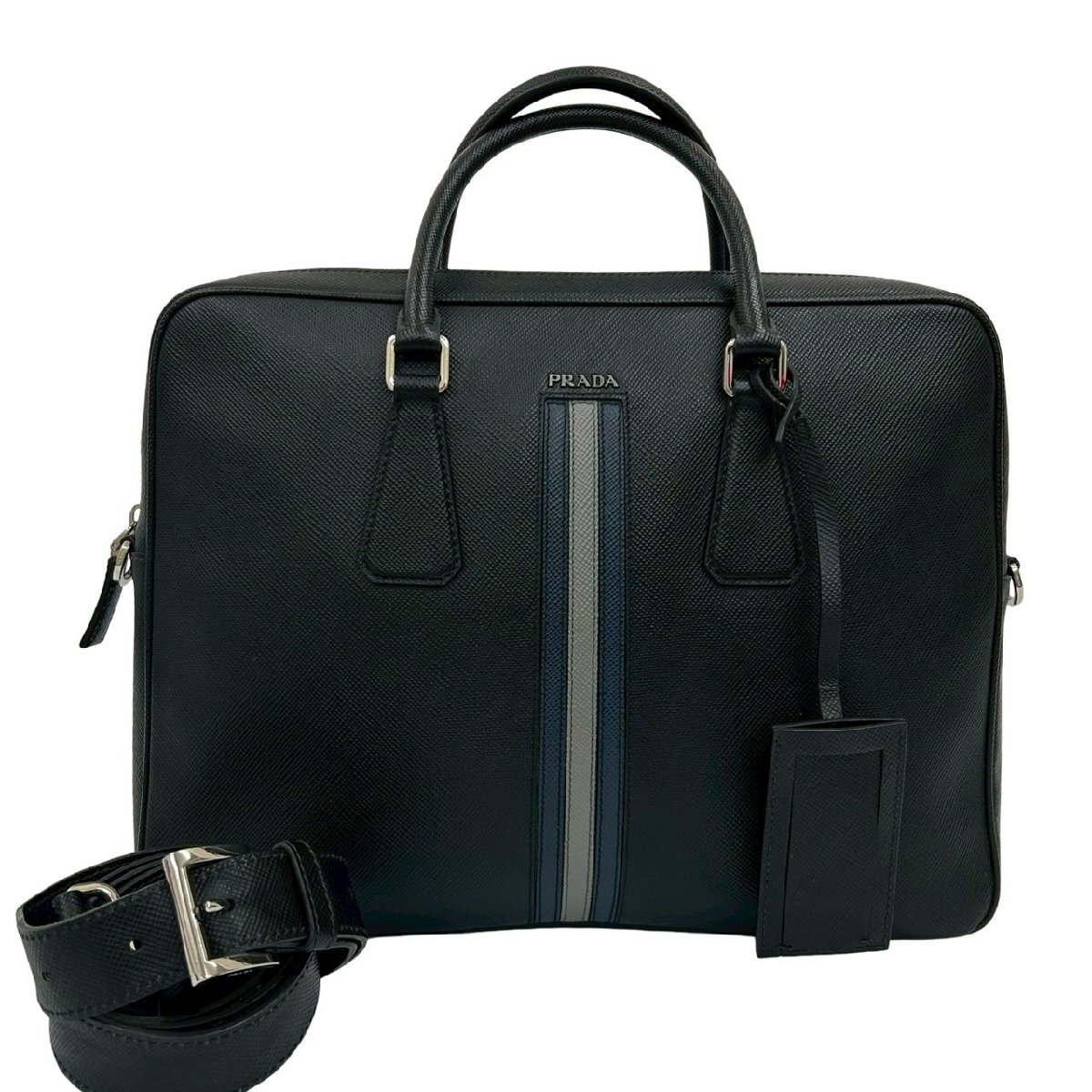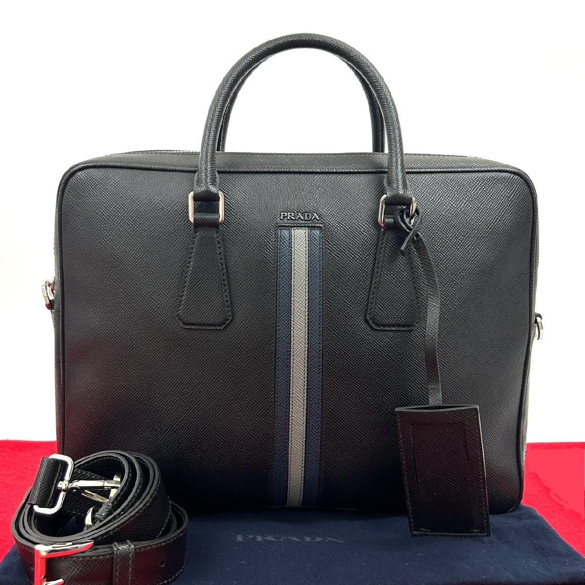 極 美品 袋付き PRADA プラダ ロゴ 金具 サフィアーノ レザー 本革 2way ハンドバッグ ビジネスバッグ ショルダーバッグ ブラック 66607