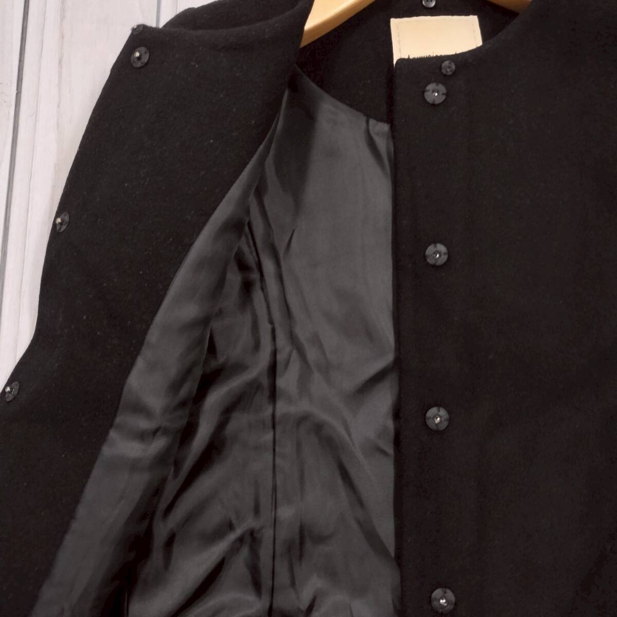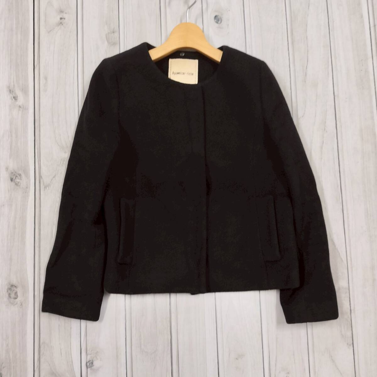 高級感 アンゴラ混 Apuweiser-riche アプワイザーリッシェ レディース ノーカラージャケット ブラック 日本製 サイズ2 Mサイズ フォーマル