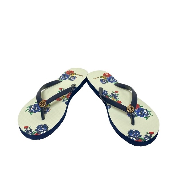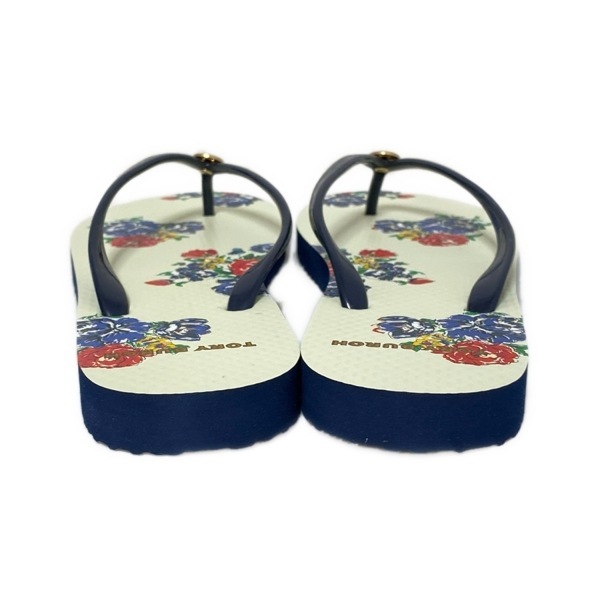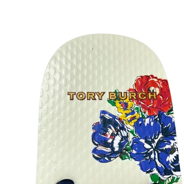 トリーバーチ TORY BURCH ビーチサンダル 8M - ネイビー×アイボリー×マルチ レディース 花柄 新品同様 靴