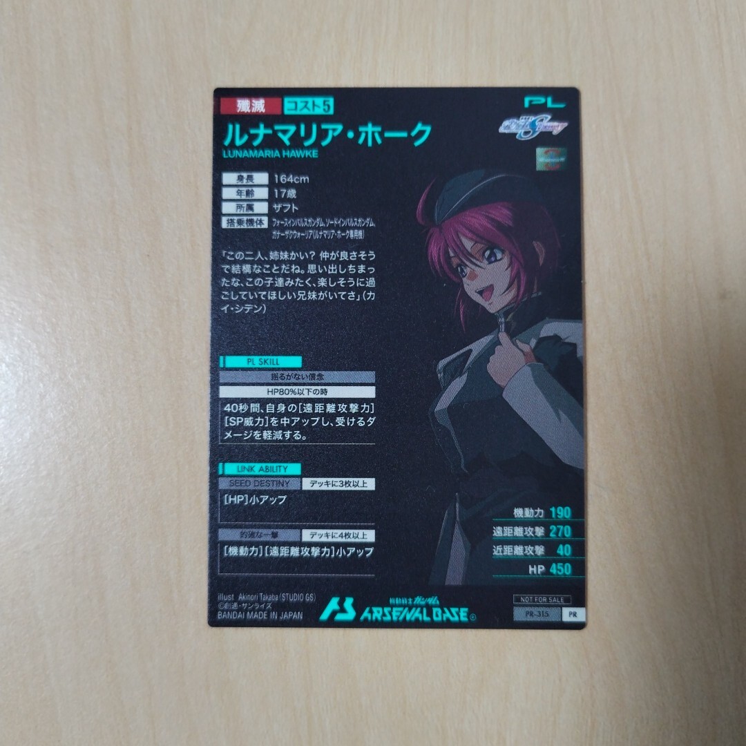 ガンダムアーセナルベース、プロモ、ルナマリア・ホークの出品となります。未使用品です。パック開封後、スリーブに入れて保管していますが初期キズなど気になさる方はご遠慮ください。配送料金は梱包代込みで全国一律、120円とさせていただきます。他の出品との同梱は対応いたします。ノークレム、ノーリターンにてお願いいたします。