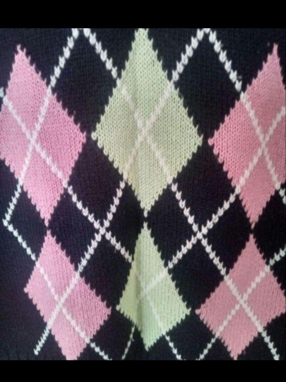 ブラックを基調としたアーガイル柄が特徴で、カジュアルながらもおしゃれな印象を与えます。