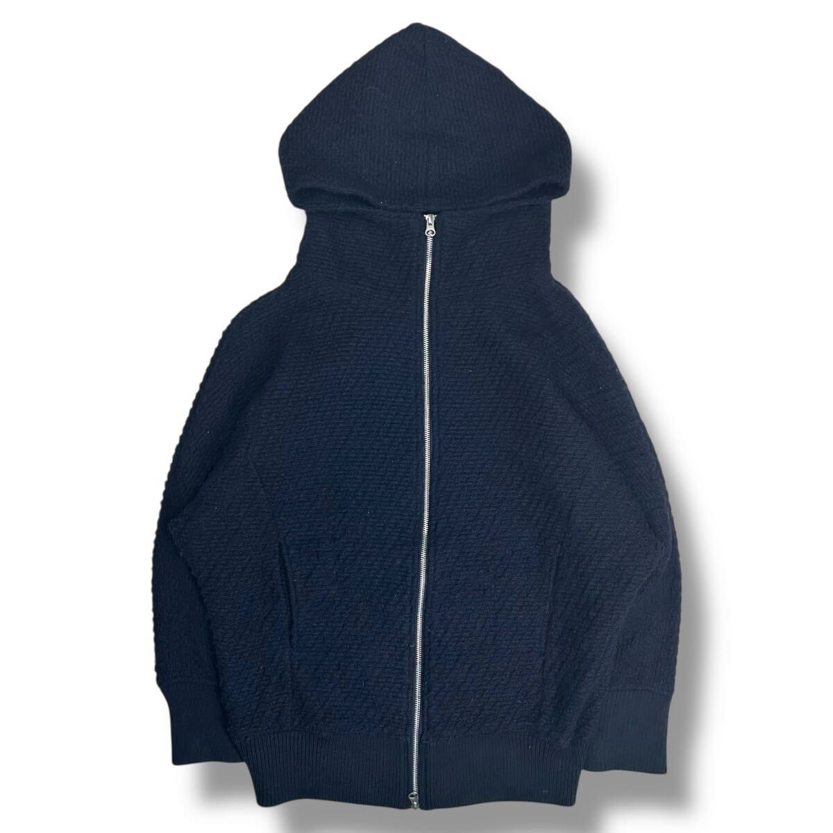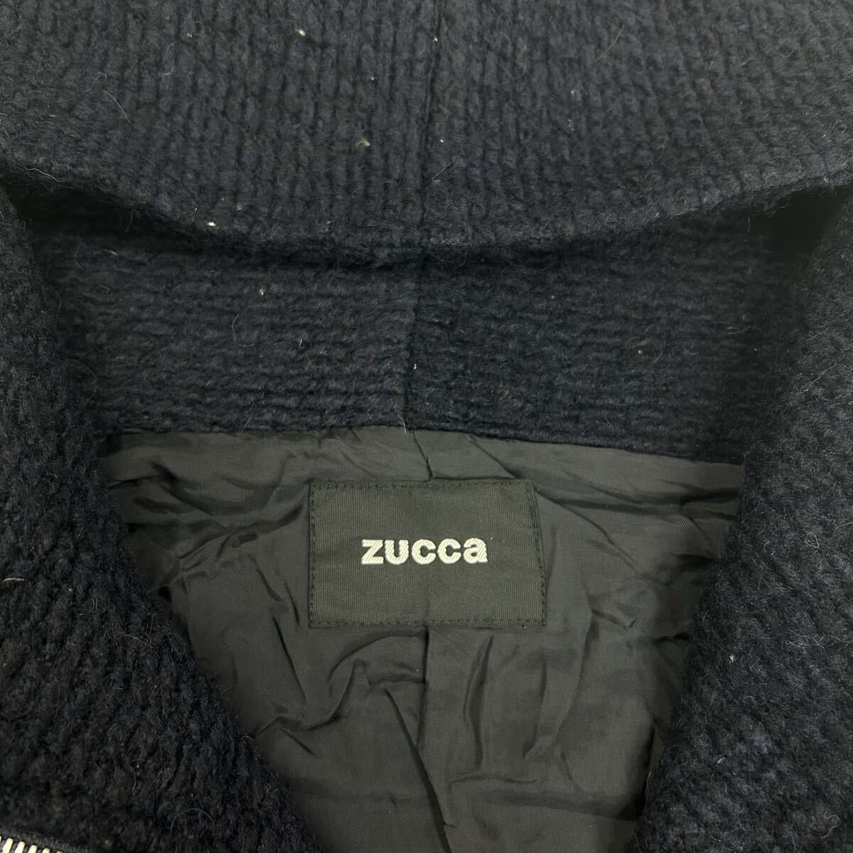 (IT1008)zucca ズッカ ウールジャケット フルジップ ダブルジップ ヘビーアウター ウール ネイビー フード付き