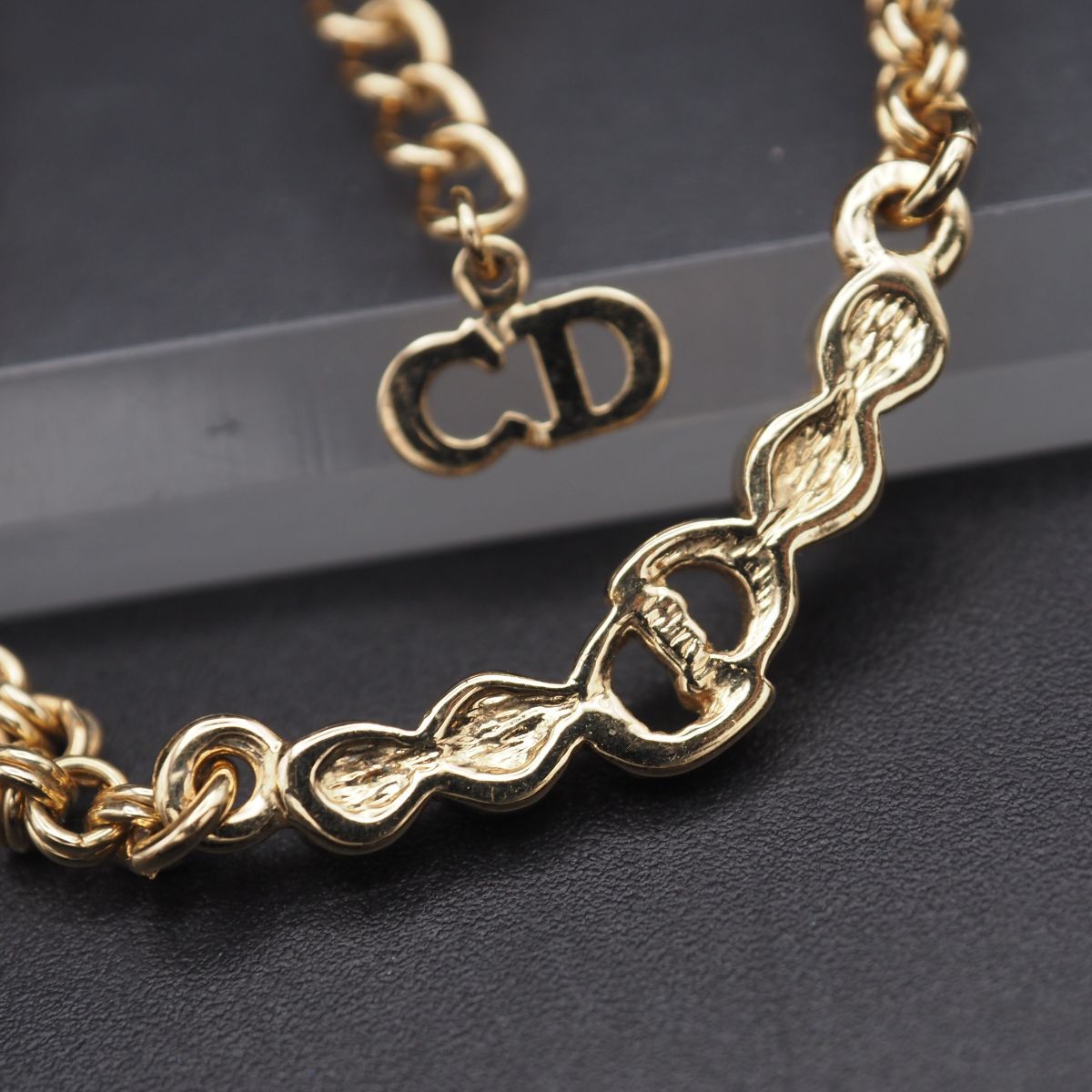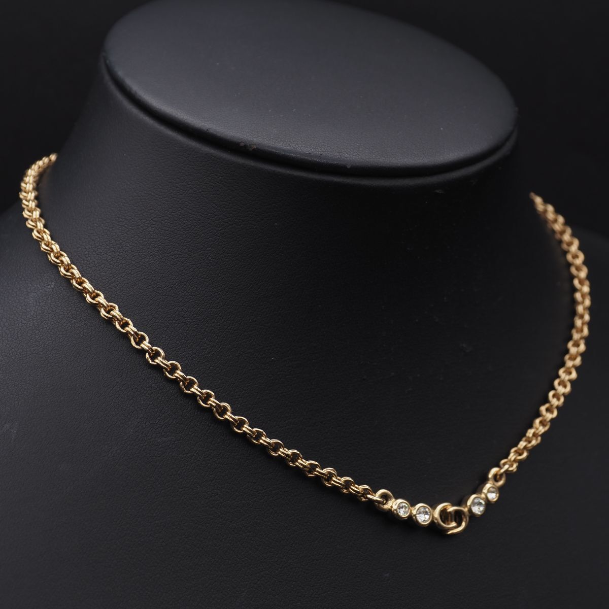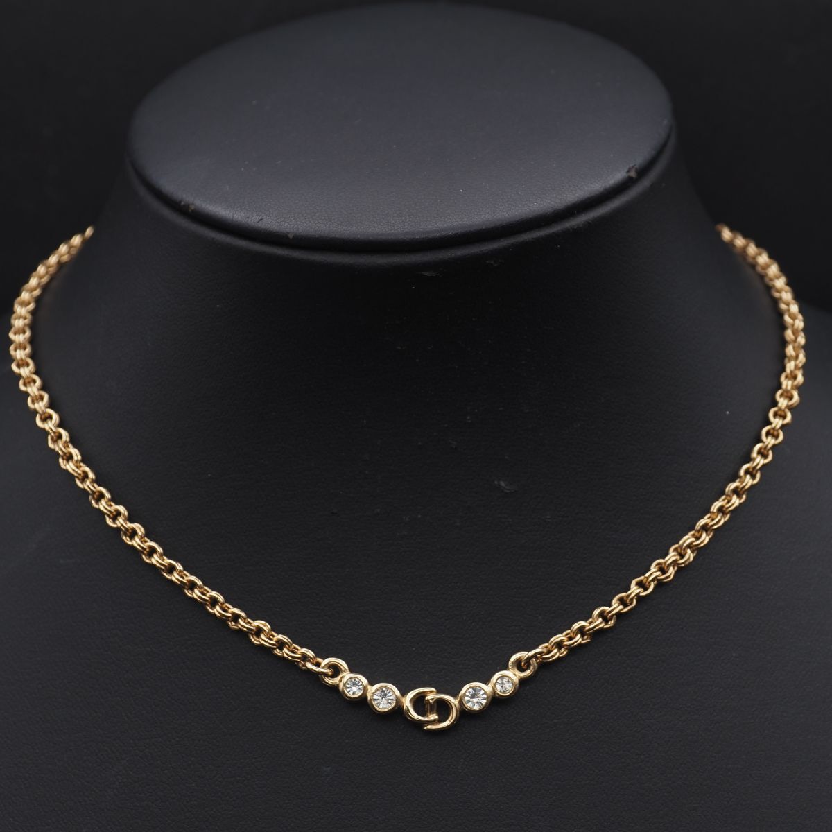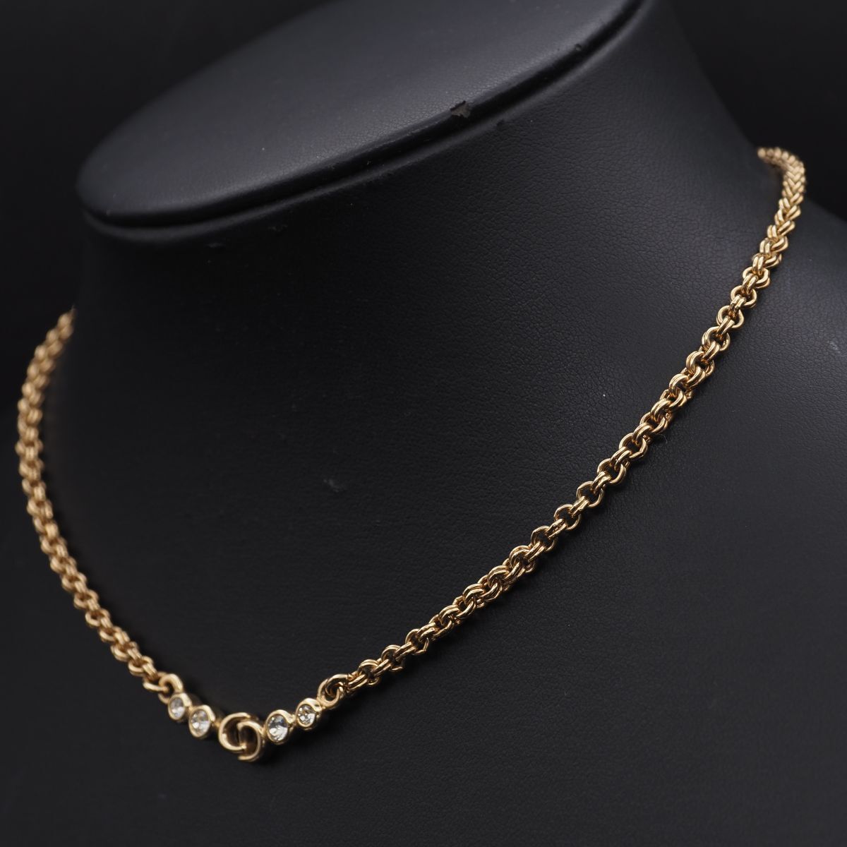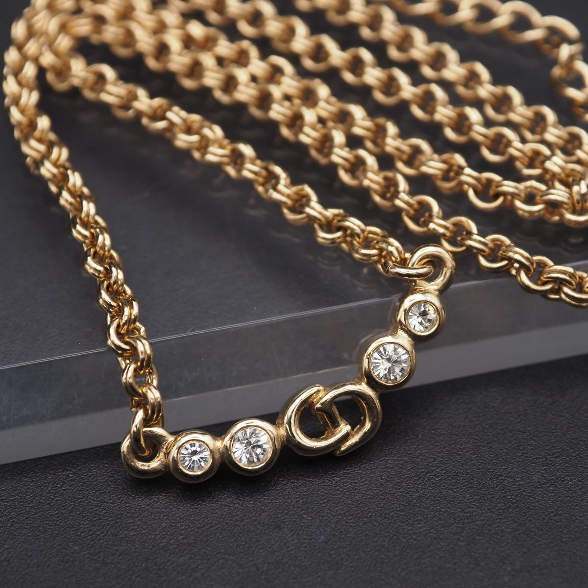 Y886 1円 クリスチャン ディオール Christian Dior CDロゴ ラインストーン ゴールド ペンダント ネックレス