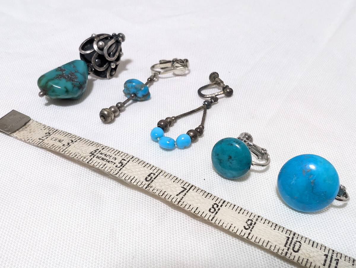 ご覧くださいましてありがとうございます。ネイティブアメリカンジュエリーのイヤリング、5点まとめて出品させていただきます。5点ともきれいなブルーのターコイズが使われた素敵なイヤリングです。また、コンディションの方も、キズやダメージ等はこざいません。写真を複数掲載しておりますのでご参照ください。ノークレーム、ノーリターンでよろしくお願い致します。