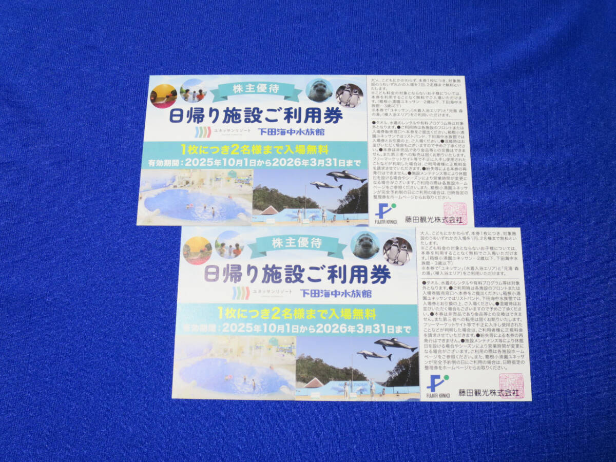 2026年3月まで■藤田観光 株主優待 日帰り施設ご利用券 2枚■箱根小涌園ユネッサン 下田海中水族館