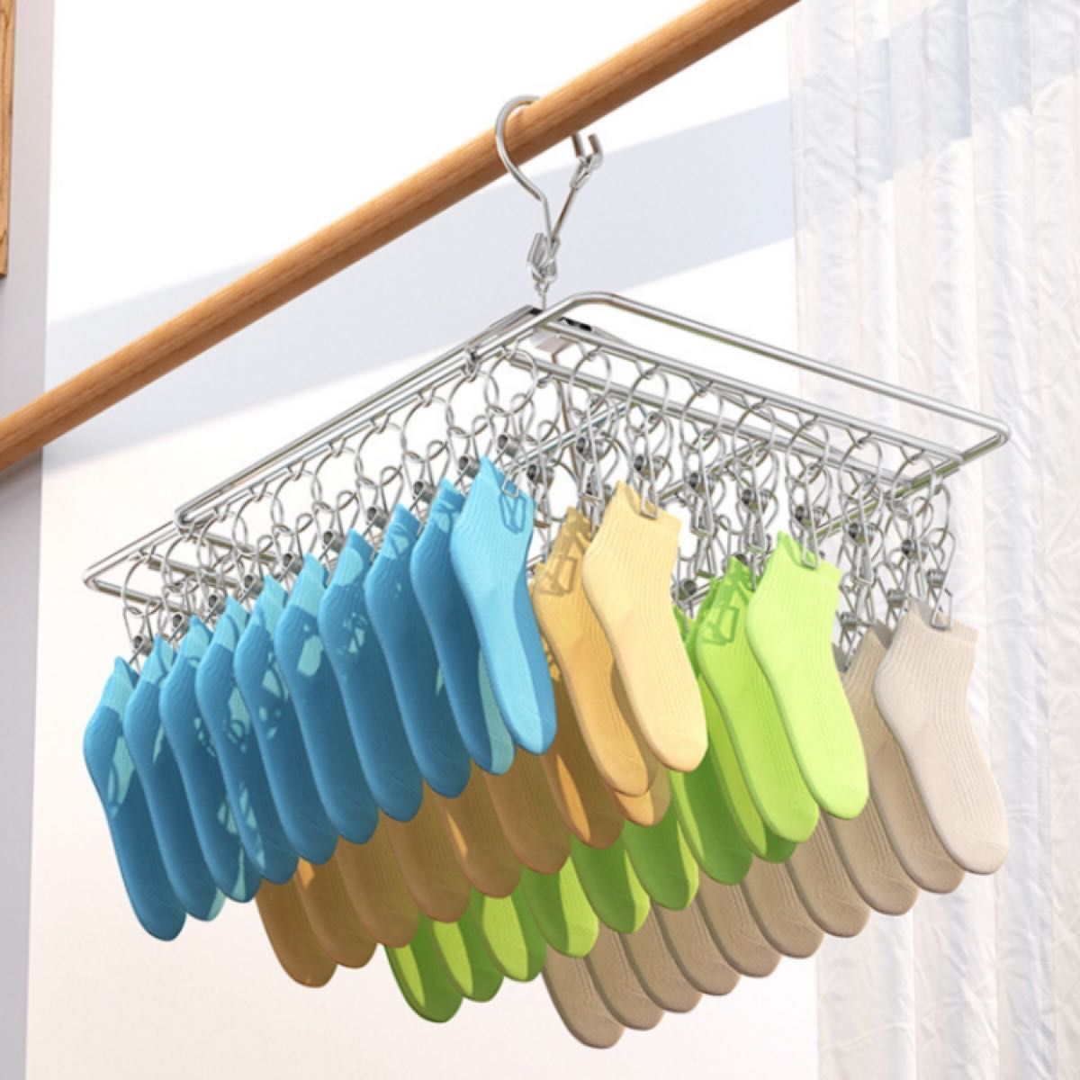 ・コンパクトなサイズながら、合計30個ものピンチが付いているため、靴下や下着、ハンカチ、子どもの衣類など、細かな洗濯物をまとめて一気に干すことができます。