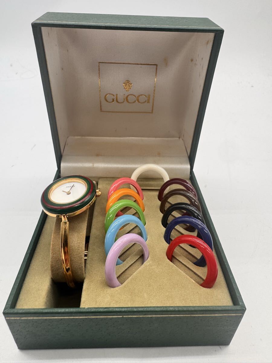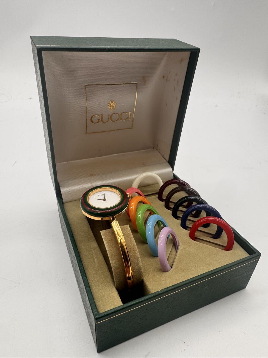 □ 1円〜グッチ GUCCI チェンジベゼルウォッチ レディース クオーツ 腕時計 交換用ベゼル付き 中古 箱/保証書付き