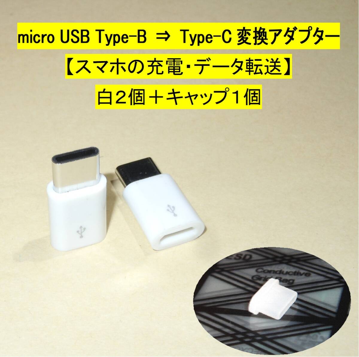 【micro USB Type-B ⇒ Type-C 変換アダプター】白2個+キャップ1個◆充電、データ転送 ・・◆新品【送料無料】