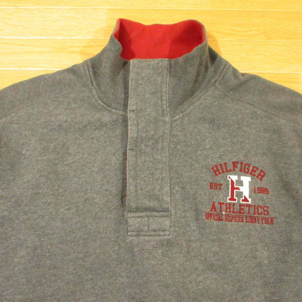 ◎良品!Tommy Hilfiger トミー ヒルフィガー ハーフボタン スウェット トレーナー プルオーバー メンズ グレー Mサイズ◆AA4719