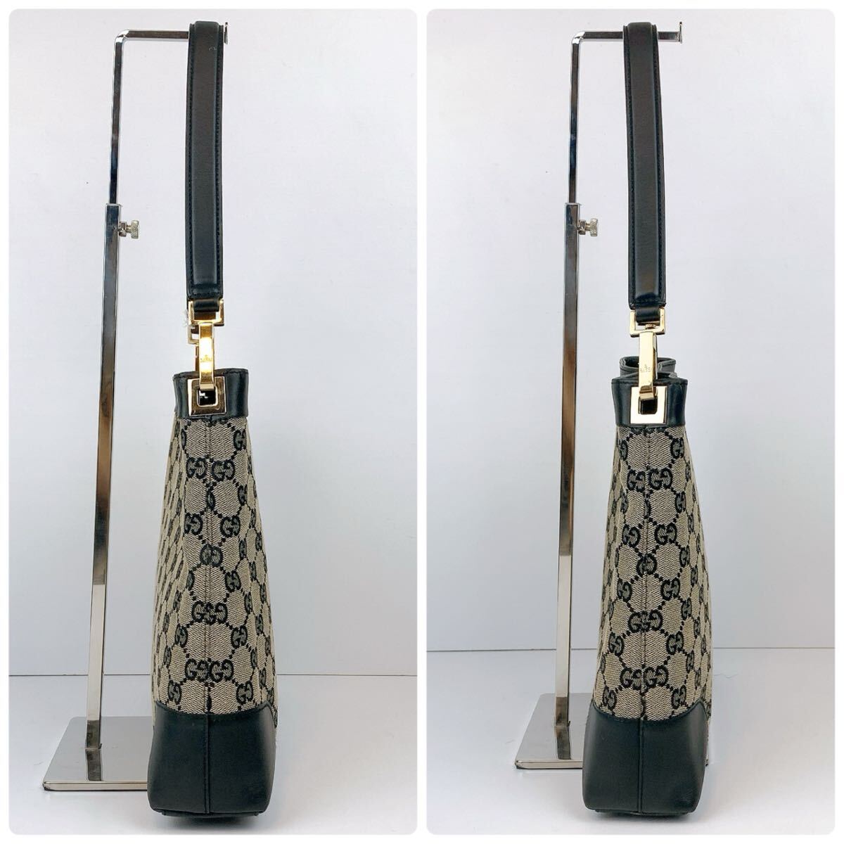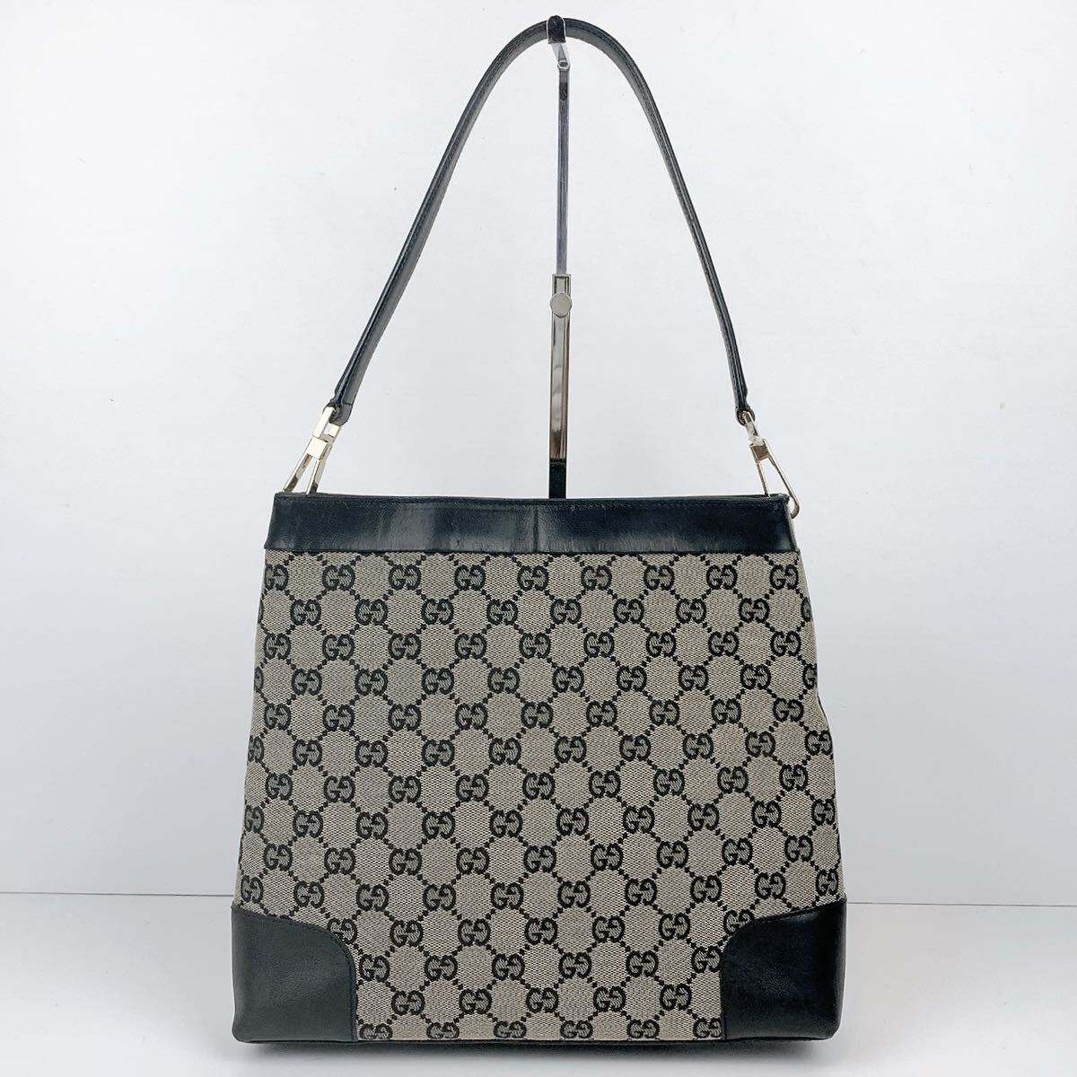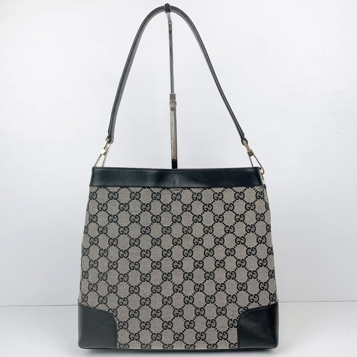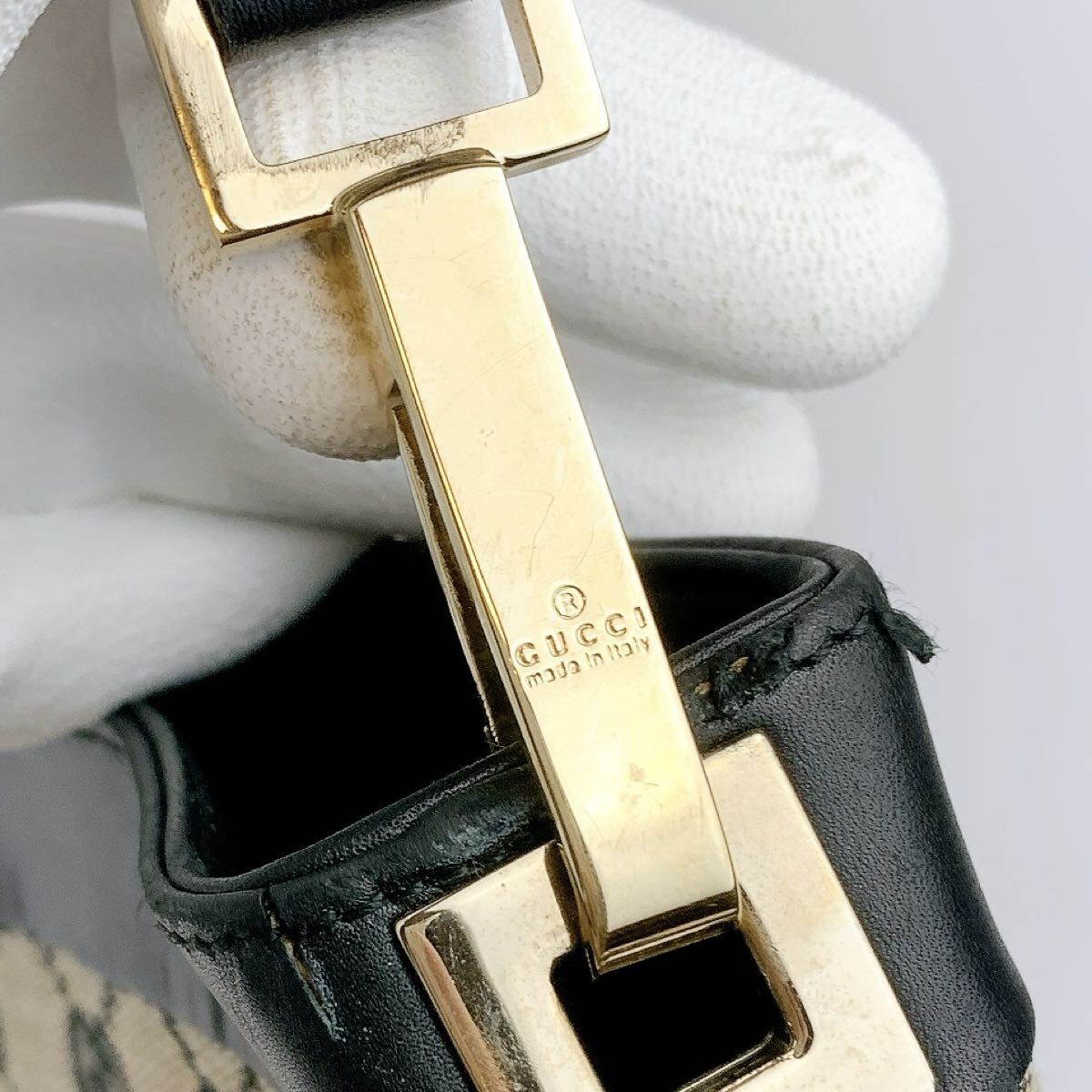 1円 GUCCI ◆極美品◆ グッチ ワンショルダーバッグ トートバッグ ハンドバッグ GGキャンバス GG柄 レザー ブラック グレー 001 4231