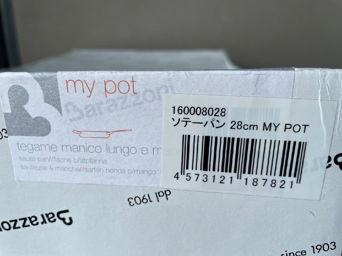 BARAZZONI ソテーパン 28cm MY POT 160008028 未使用箱痛み品の出品となります。箱に痛みがございますが未使用品となります。いい出物がございましたので超特価の12800円スタートでお願いいたします。落札価格に別途消費税がかかります。未使用品につき現状渡し、ノークレーム・ノーリターンでお願いいたします。よろしくお願いいたします。