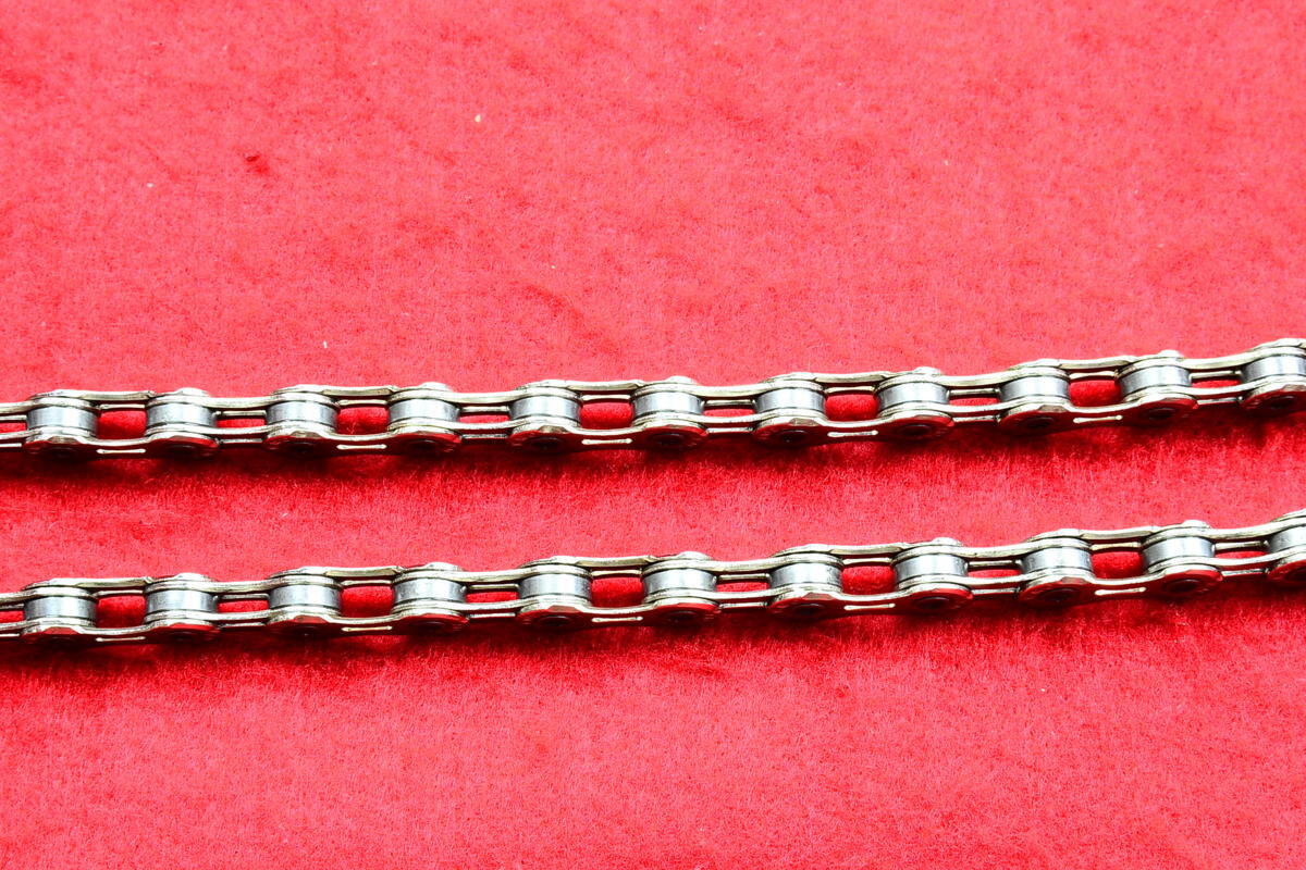 アウタープレート、インナープレート共に肉抜きされた軽量チェーンです。